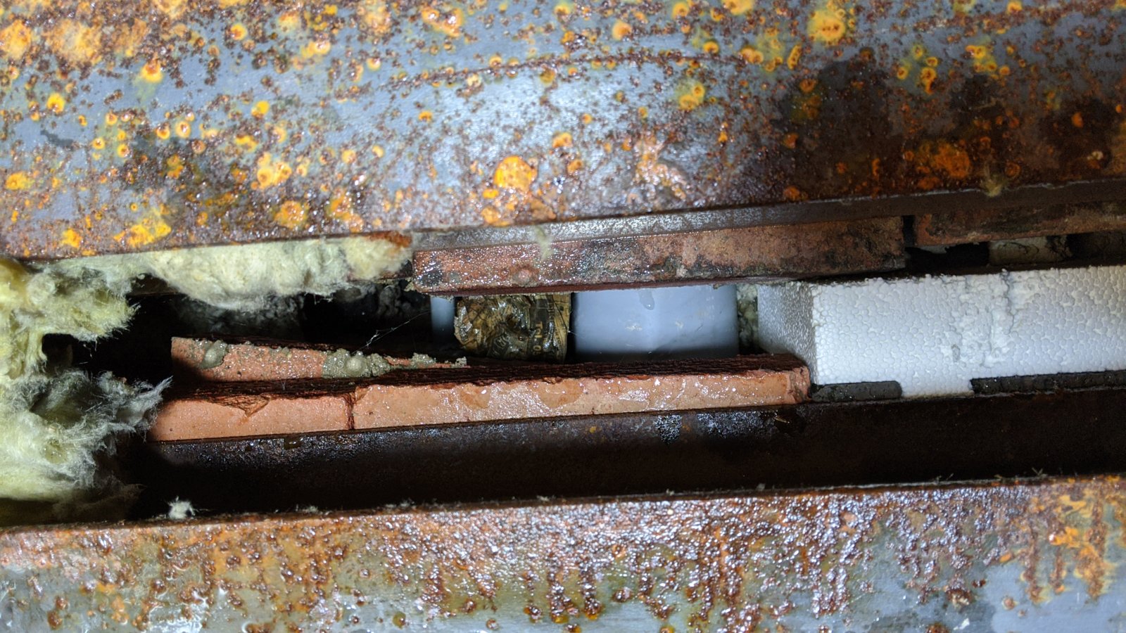 The two steels mentioned above then sit on a single steel which spans the length of the kitchen, this is full width of both leaves.