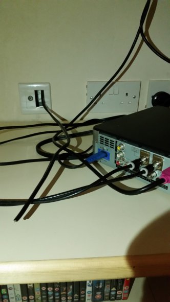 My son has just moved into a newly refurbished house. There is a twin coax from the satellite dish going through the wall which he had connected to the sky box. Coming out from the wall behind the TV is also another twin coax which has been snipped. As it's a refurb I am assuming there has never been anything connected. In the adjacent room there is another snipped twin coax and in the upstairs bedroom there is yet another snipped twin coax. In the photo you can see it bottom left. It is like this in all 3 rooms. There is also an aerial output at all 3 points.