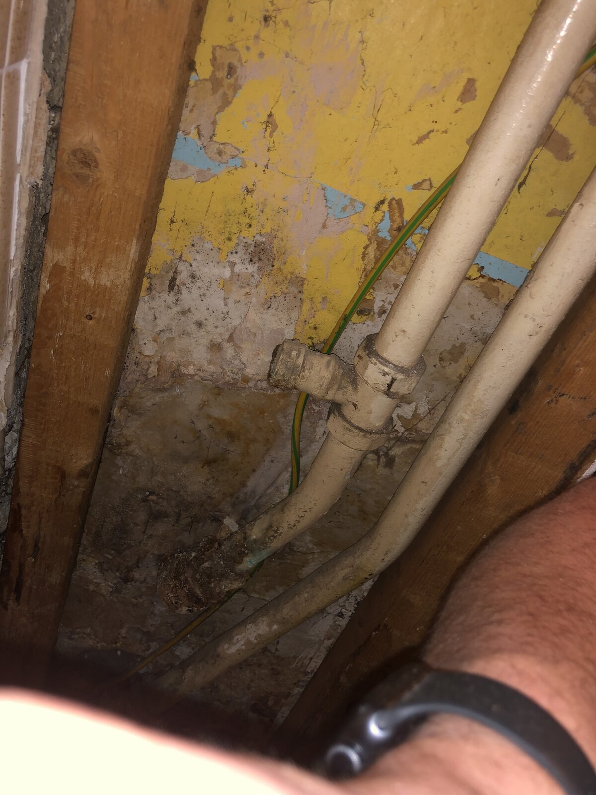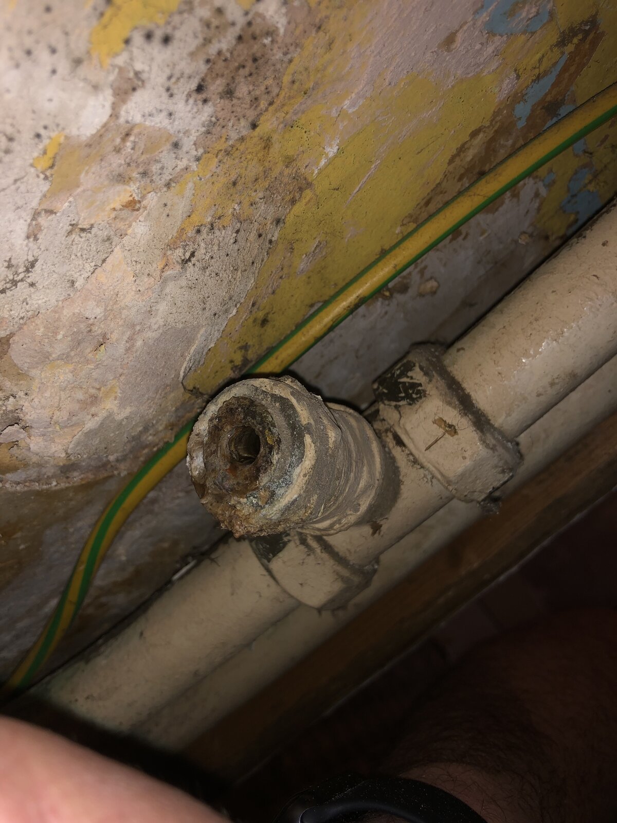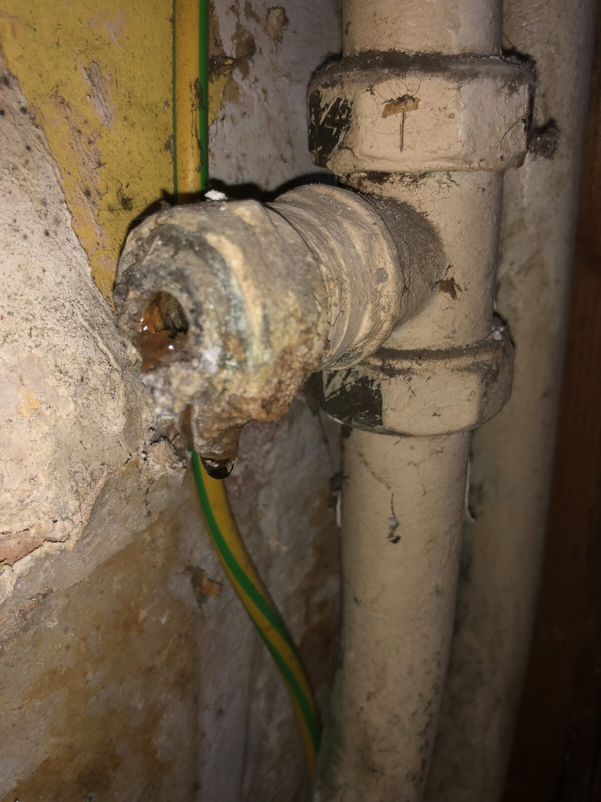 It seems to be an old tee fitting which has been seeping for years causing a bit of a mess- not too fussed about that as it’s a rolling restoration project the house!