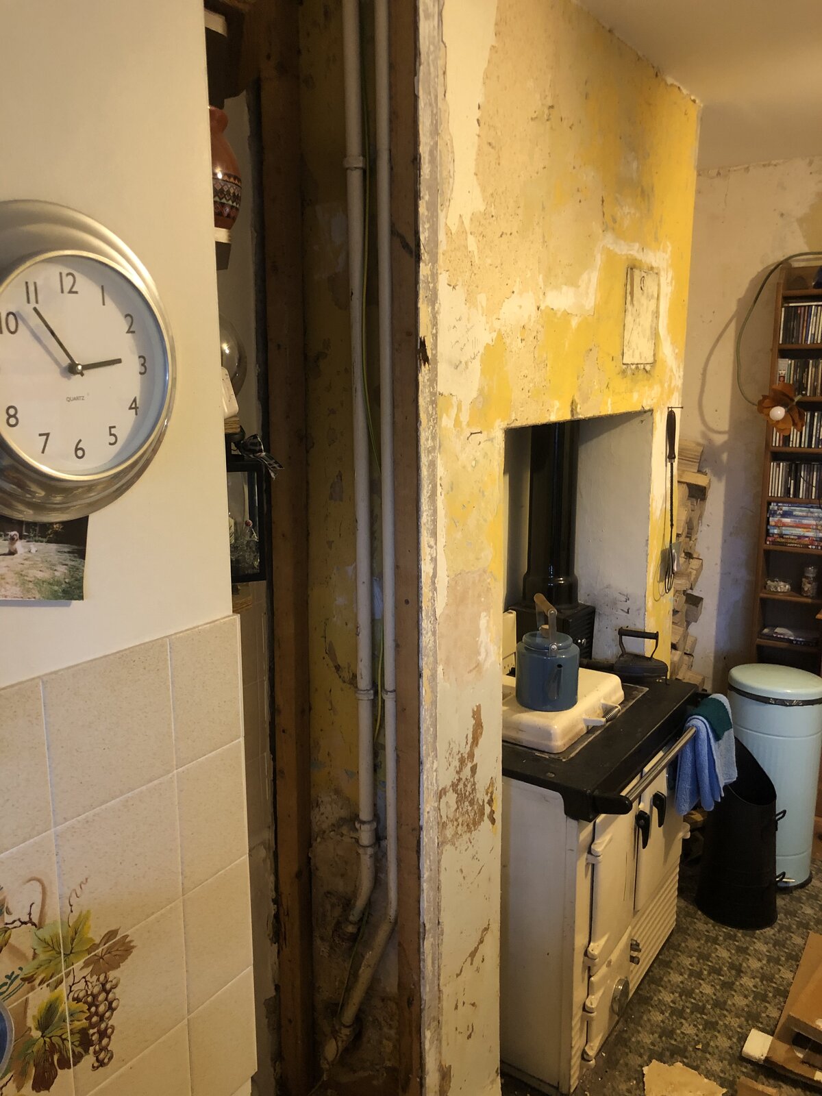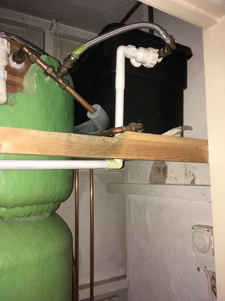 Hi, at mums house there is an old Rayburn Regent solid fuel which was probably installed in the 60’s. It works well enough but today we noticed damp below where the back boiler pipe work goes up to the hot water tank so I ripped off the boxing and found this.