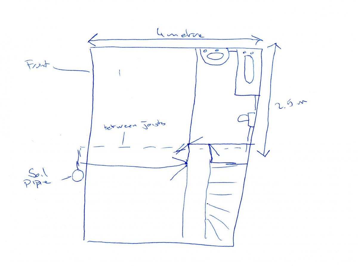 Another part of the plan is to run a vertical soil pipe in the store room next to the bathroom before the pipe disappears under the floor and fit an AAV due to the length of the run.