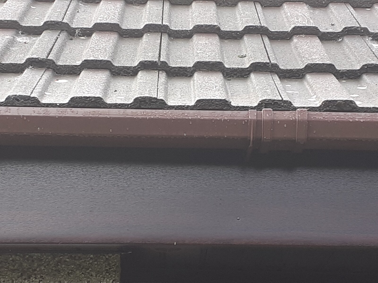 Just finished capping over my Facia's on the front and back of the house. Still have around the rear extension to do at some later date. The house is a 30 year old Timber framed house with Marley interlocking concrete tiles fitted over under sarking felt. The whole roof has OSB fitted over the rafters. I noticed before I started ripping the old gutters off that the felt did not hang into the Gutter (About 1/2 inch short) and in a few sections had become pretty tattered where it comes out under the tiles. However, the top section of wood facia behind the gutter that had never been painted was dry and still sound, so it seems the tiles are doing a good enough job with no water getting behind them. I carried on with the cap over making sure I got the capping tucked under what felt was showing. I tried slipping some DPC under the old felt but it was impossible to get the tiles and old felt lifted enough to get sections of DPC slipped under.