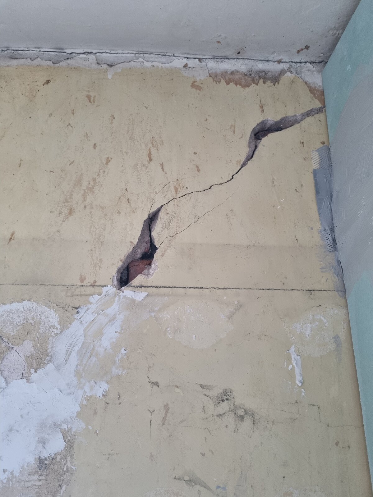 Refreshing the bathroom in our 1930s detached, removed the tiles and the walls are not in a great shape. Largish cracks in the plaster in exterior wall, ceiling and corner gap.