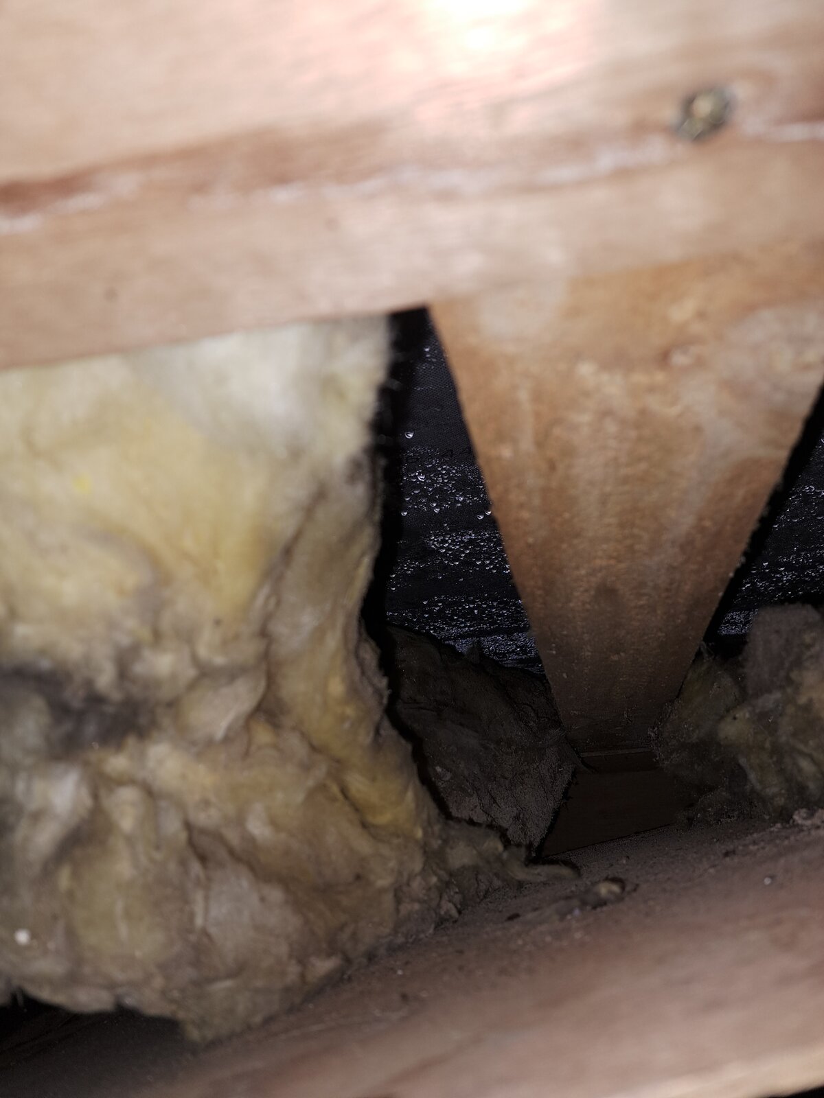 However, I'm concerned we may have leaks. I bought a damp meter, and I'm getting readings of around 19% around a velux window,. We've got a converted loft that is now a bedroom and bathroom, but in some loft storage space in the bedroom I was getting damp readings of about 29%. I removed some of the boards to see if I could see anything, and there is loads of beads of water on the membrane, and the insulation is soaking wet. I'll try to post a picture.