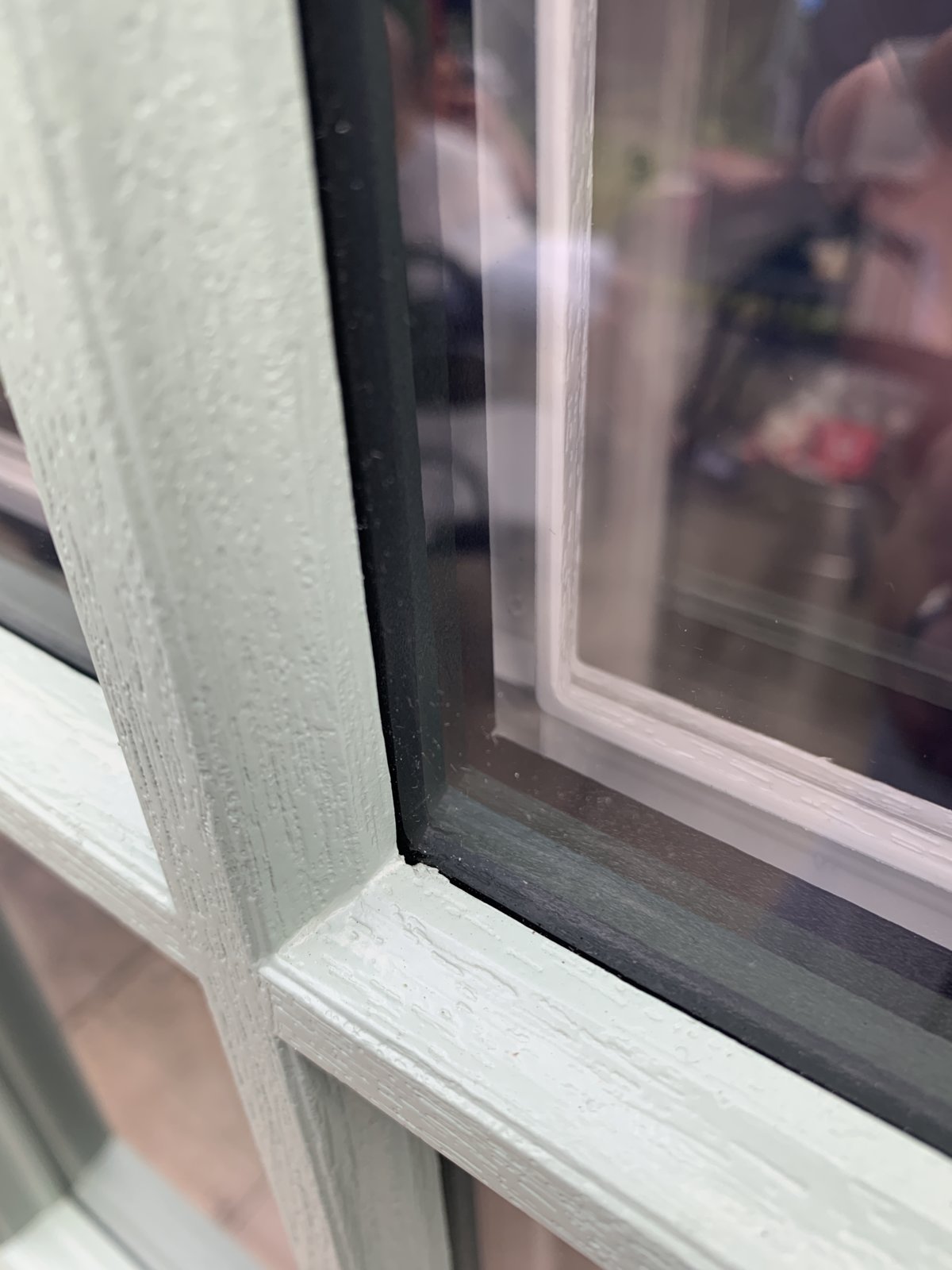 1st image I’m pretty sure the Glass in the door needs replacing it’s misty and the casing can been seen the border doesn’t seem to cover the glass properly, one side of the window you can see the black cassette by about 5mm the other side is recessed.