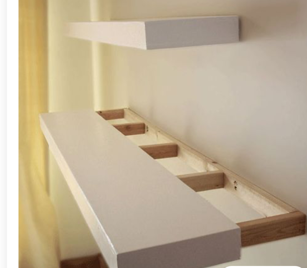 The treated baton is 25mm the other too thin. Extra baton to rear of shelf to accommodate the supports. If you leave a 2” gap to rear of shelf you can also fix a baton side on to wall and slide shelf over it when mounting to wall which adds extra strength and rigidity to shelf.