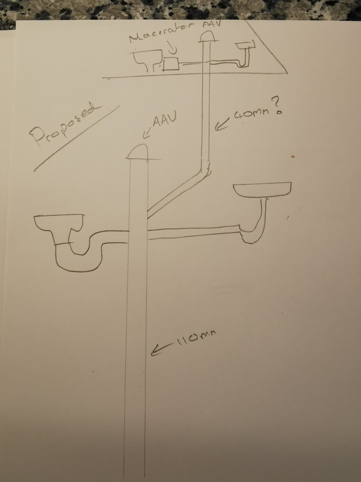 I'm currently redoing the first floor bathroom. The current soil vent stack (110mm) is boxed in the corner and vents through roof. The boxing in is 250mm x 300mm and I'd like to minimise this if possible. I was always proposing to reduce soil vent to just above sink height and fit an AAV, boxing this in with a removable cill for access with ventilation coming from roof space below.