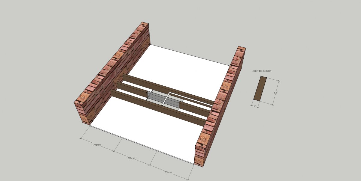 I have cut a hatch in the timber floor in my hall and need to cut the middle joist and frame the hole.