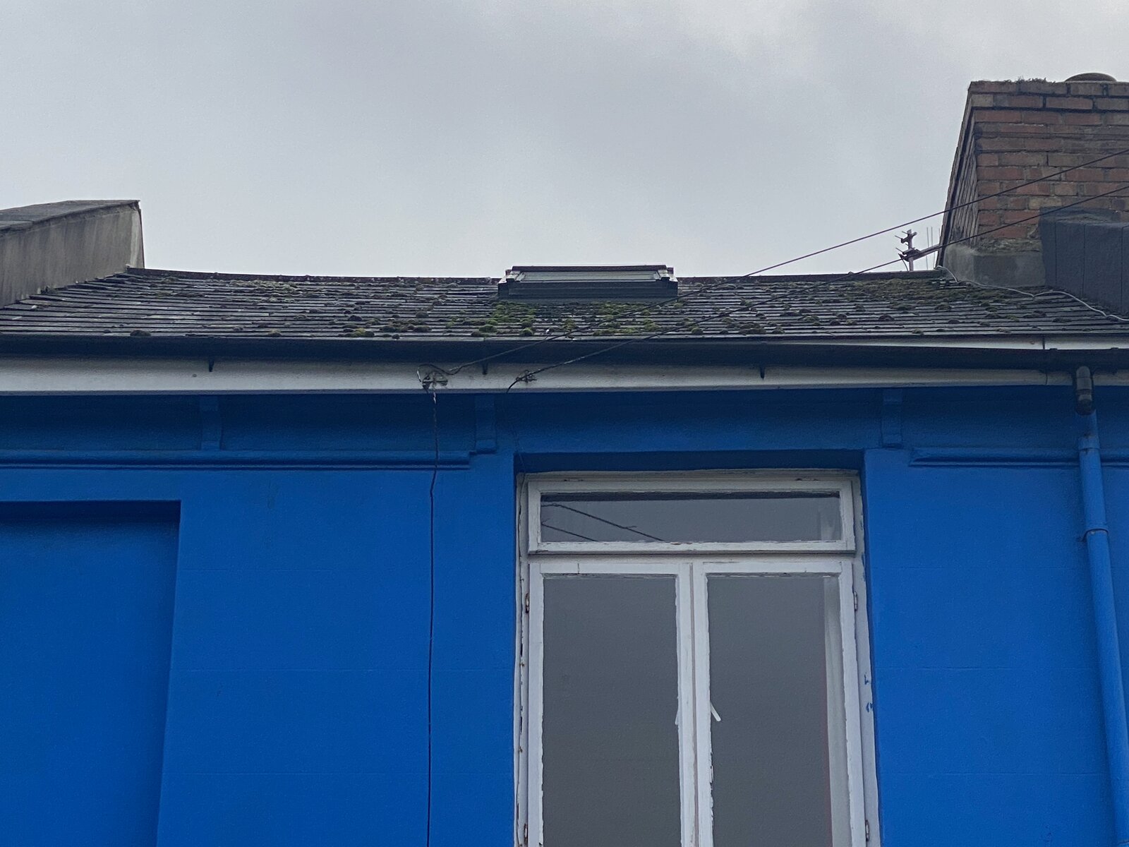 The Ashlar walls are supported by two 8x2 timer beams which have been calculated to be about a quarter of the strength required! As a result of the lack of support and the additional loads imposed, the ridge has sagged.