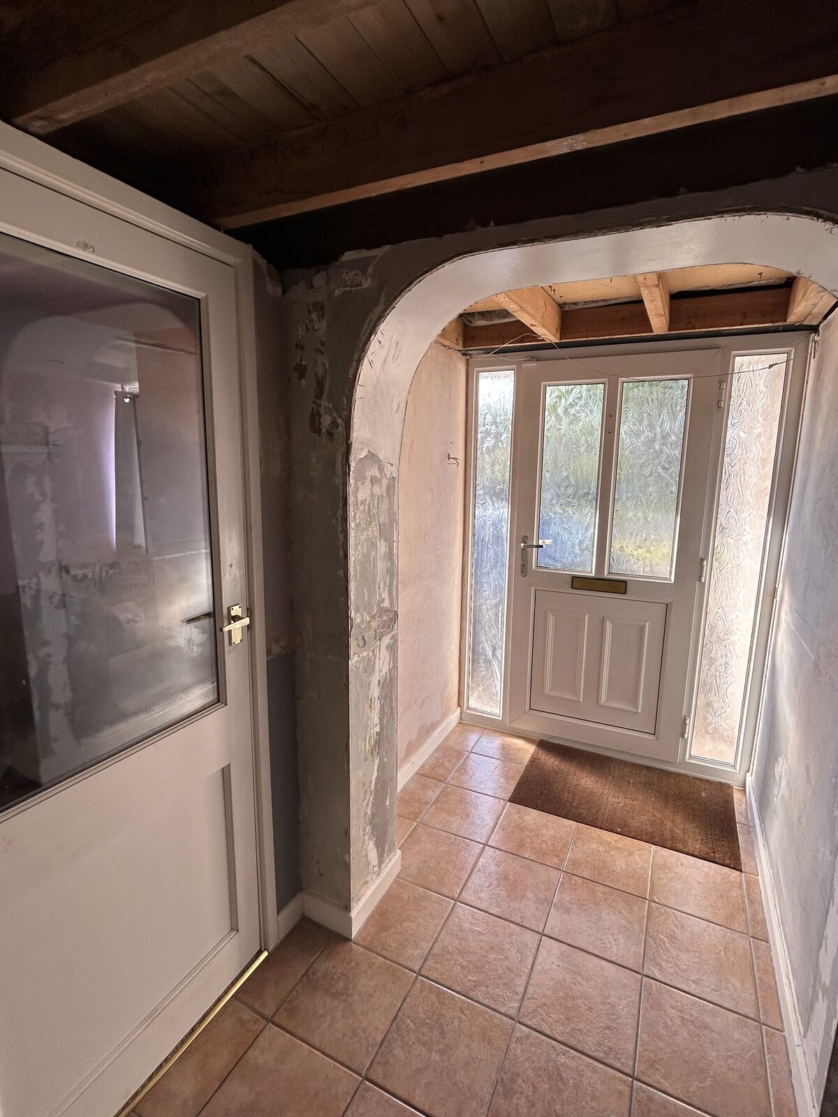 I want to remove this archway and the bit sticking out on the left to make it flush