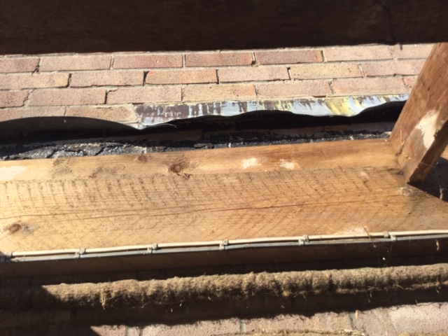 I have encountered some black tacky bitchumen like substance on the brick between the old flashing and the joists (see image).