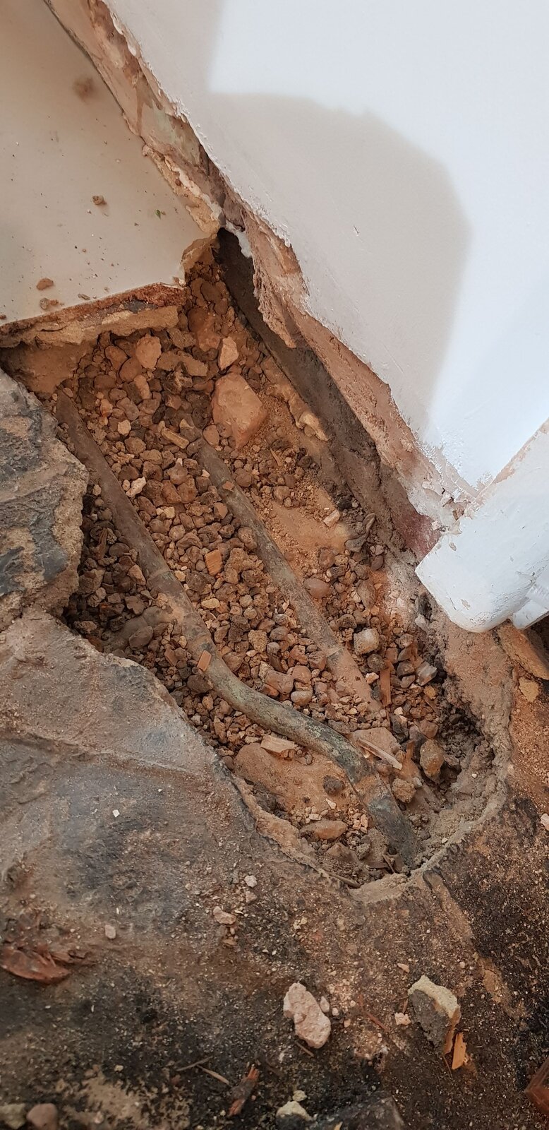 Hello, I am preparing some flooring for tiling. This has involved removing the existing parquet floor covering. In one area the screed was badly cracked and a chunk of screed lifted out. This is in an area where the central heating pipes run.