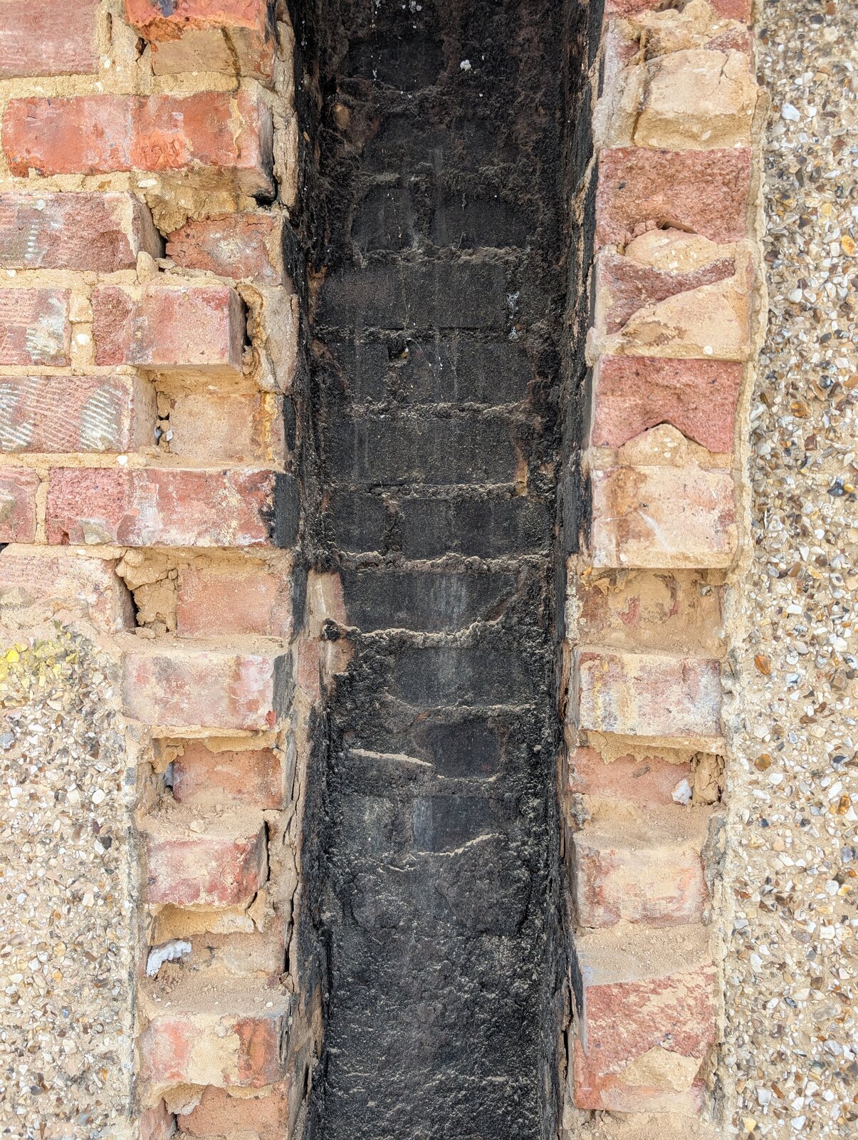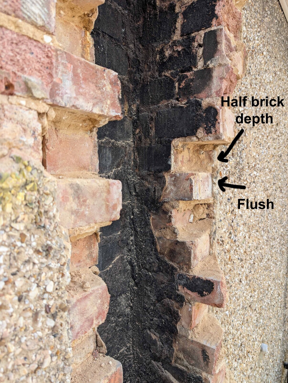 I'm removing pebbledash from our external walls (1935 semi) and I've hit the point of the old stove / boiler flue. I've included photos below.