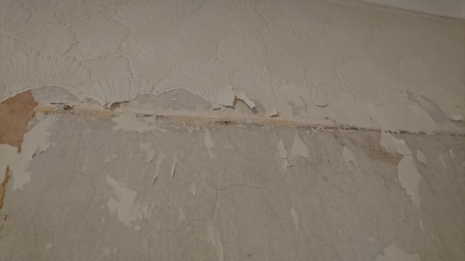 I'm in the process of removing wallpaper from the living room so we can re-wallpaper. Doing so, I've discovered a 1-2cm line running horizontally along the wall, about 1/4 of the way down - does anyone know what this could be?
