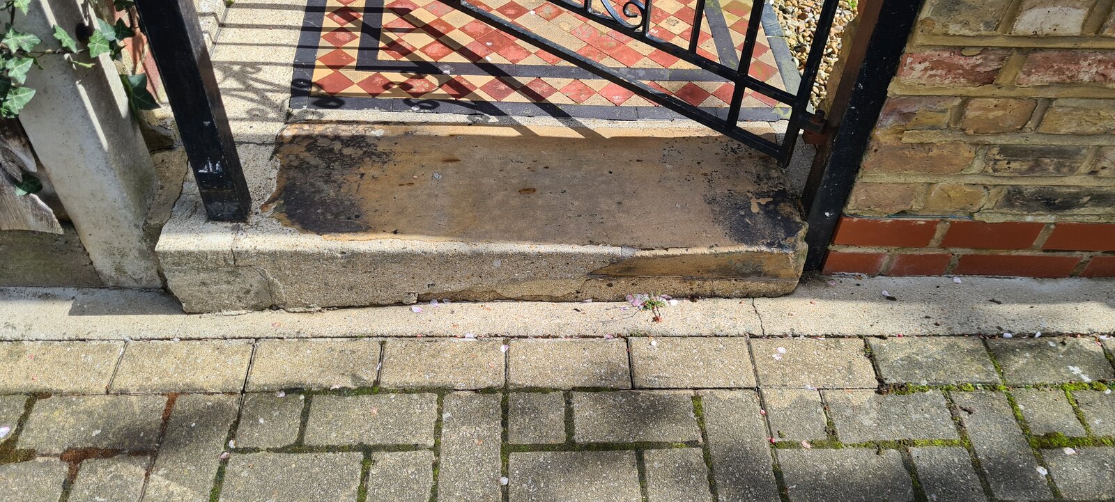 I plan on redoing the tiling on my front garden path and the apron. Do I need to remove the existing path tiles and concrete slab, including the apron, or is there a simpler method? Do I need to remove the existing tiles on the floor of the porch and put a new concrete base or can I just tile straight over those? I have attached pictures of how I would like it to look.