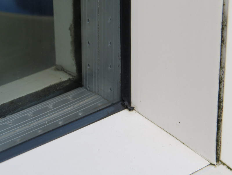 From the outside it looks like there might be some tape at point A, but the uPVC frame goes right up to the glass on the inside.