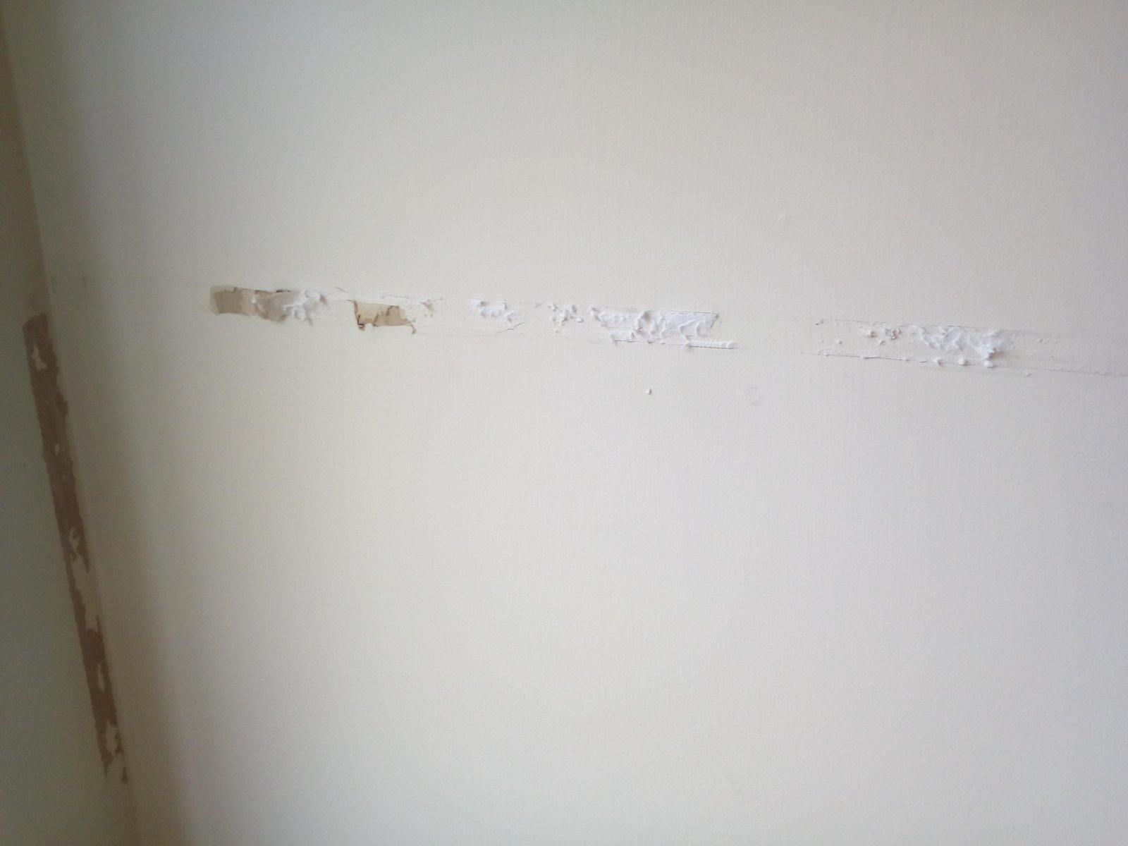 In some places a bit of paper came of, in other places there is glue left on the wall.