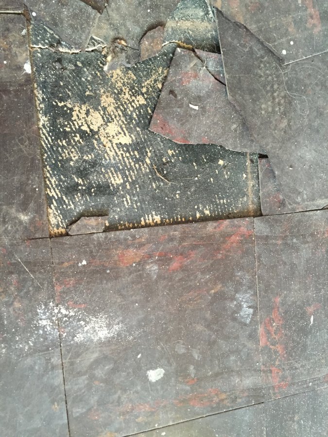 The floor tiles are a few mm thick and the bitumen possible less (see pic)