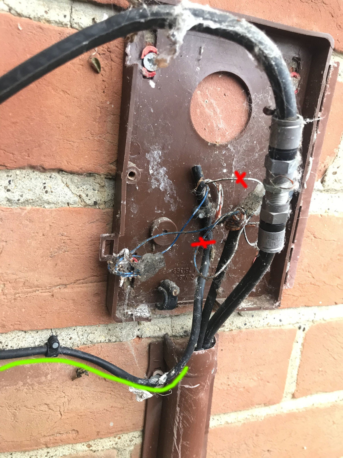 The cables looked pretty messy, even for someone who knows absolutely nothing about this! But I was much more scared by the MASSIVE spider nest I found inside (photos were after cleanup..), must have been a good hundred of the little buggers running around!! Mum-spider didn't looked pleased either!Cut the cables outside in the External brown box just underneath the Jelly Crimps so the cable serving you could still be used. Remove it all, looks a p Poor installation anyway! I used to work for Telewest in West London to Maidenhead and some of the contractors were pretty ****
