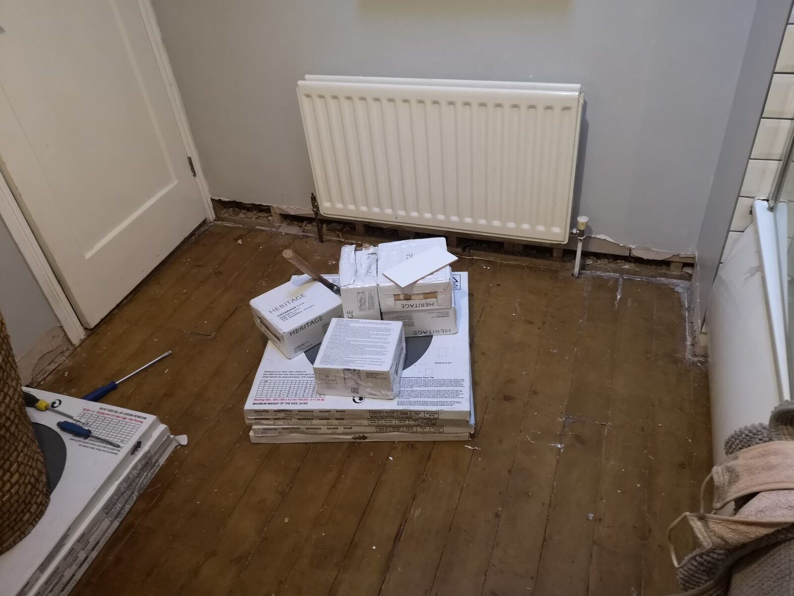 One wall when I pulled skirting off has a two inch gap a bottom of plasterboard. That will need to be tiled over.