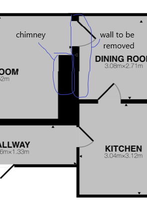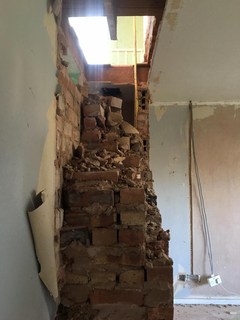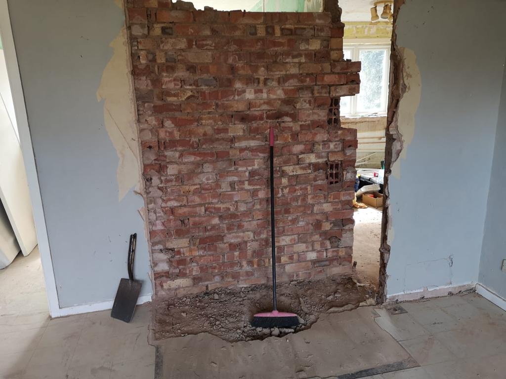 Hello, I am closing the chimney in my living room (not removing), but I would like to remove the brick wall behind it so that I can replace it with a stud wall to allow me to install a pocket door