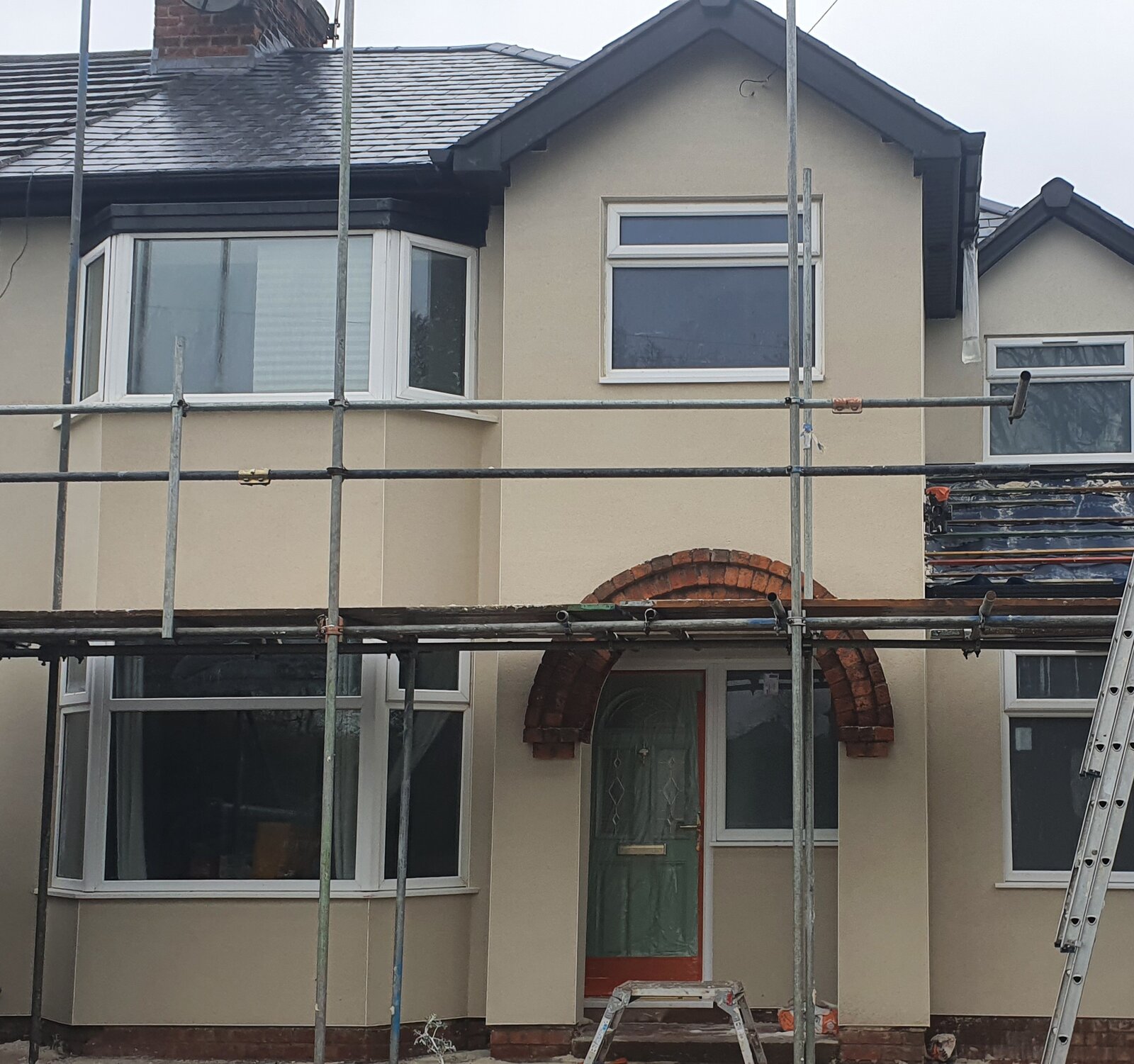 Our house is a 1930's semi with solid wall construction. About 2 years ago we completed an extension on the side of the house which needed rendering but as the render on the old house wasn't in good shape we thought it would be best to take off the old also and have it all rendered the same.