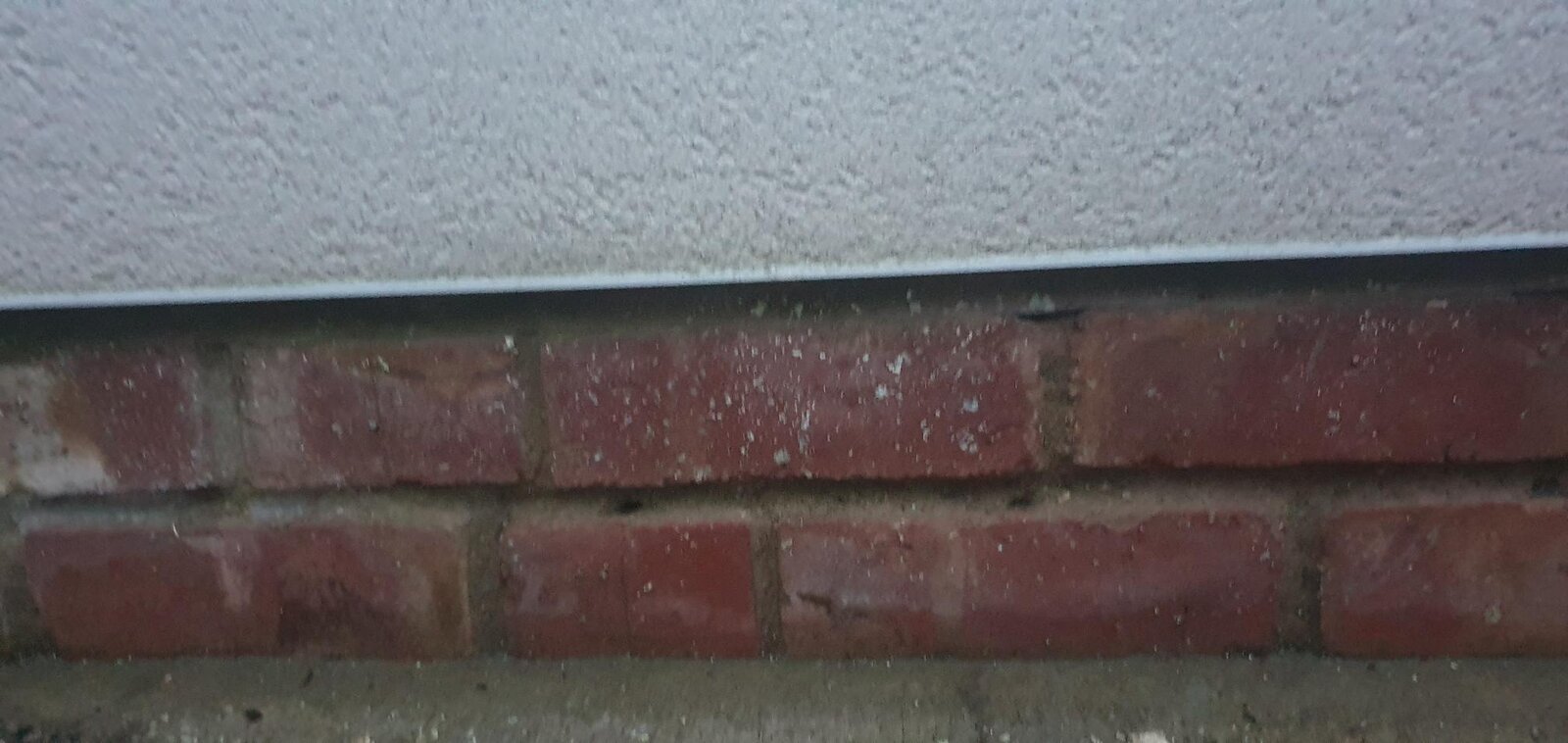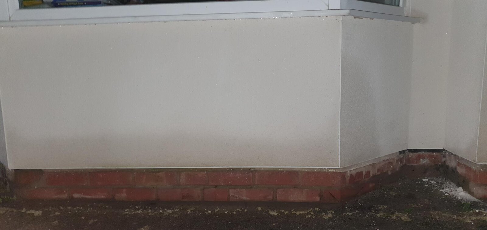 Outside I've noticed that the render seems to dry out fairly well except for the bottom foot or so. I've had a look and they've used a stop bead instead of any bellcast type but not sure this would cause this anyway? The bottom might be residual water trickling down but surely it shouldn't be getting to the stage it's getting into the house? Any obvious things I can do to rectify?