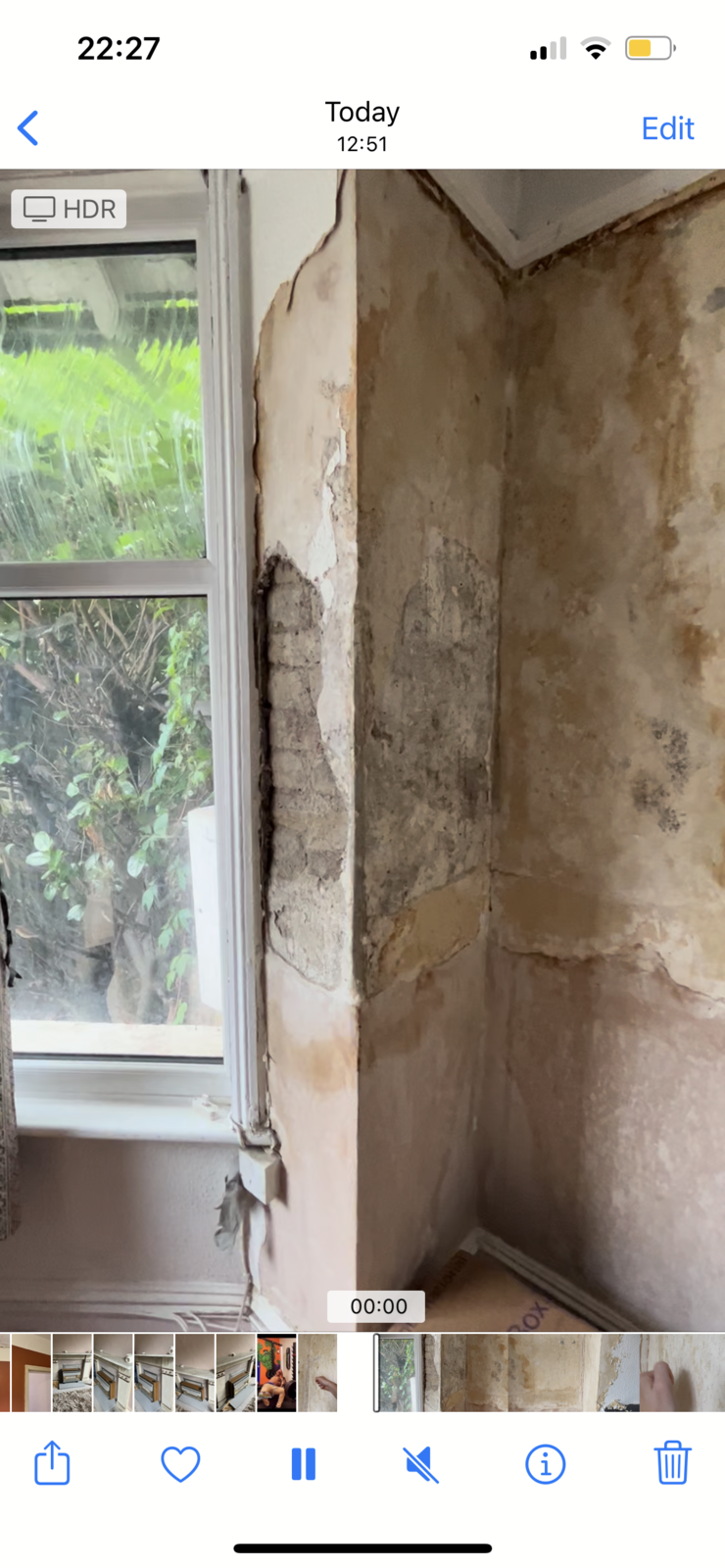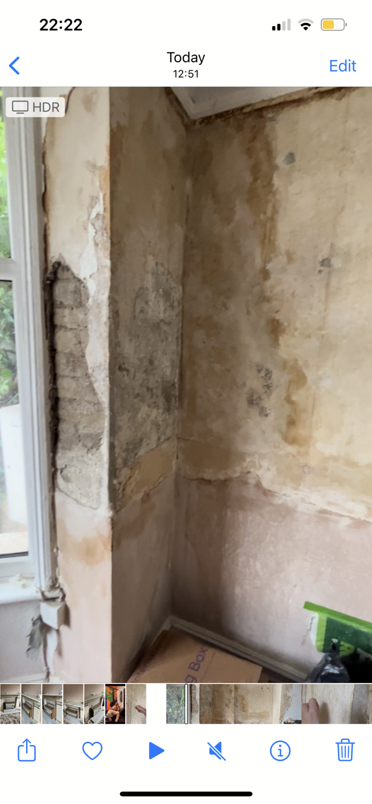 Hi guys would like some opinions on where to go next. So firstly this is a semi detached room which seems to have both penetrating damp and condensation under the bay window. My question is firstly, should I go back to the brick layer to put in some insulation and drywall. Or once the penetration damp is fixed remove all the affected plaster and just skim the rest?