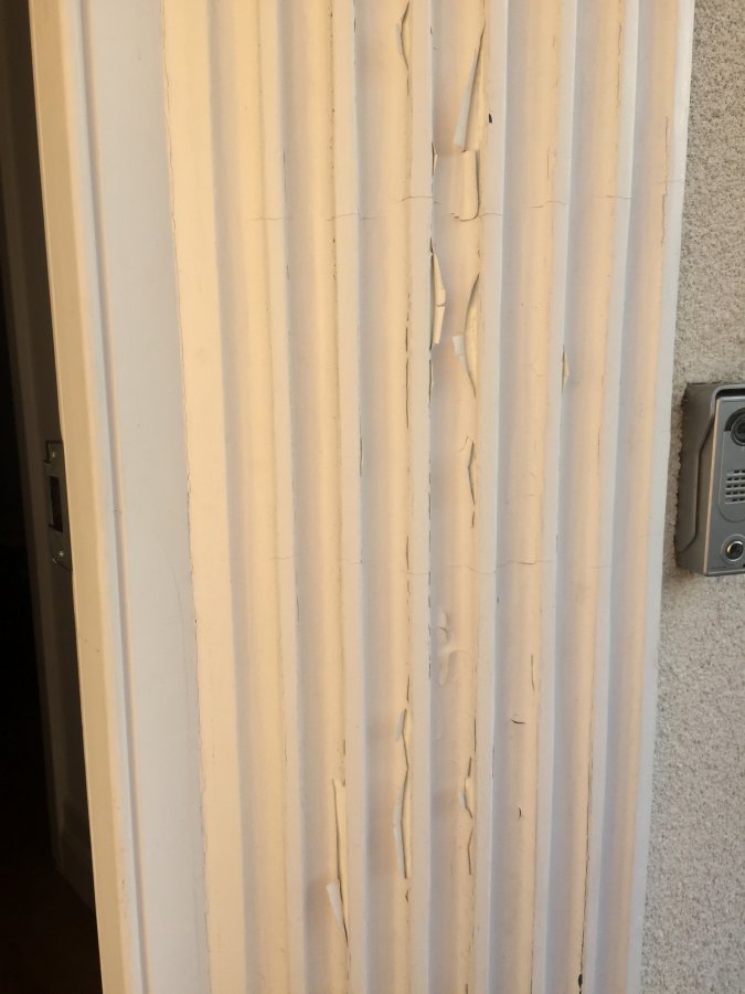 I was wondering whether it is a difficult DIY job to repaint the door pillars (see pic). After I hosed them with water the paint has been coming off.