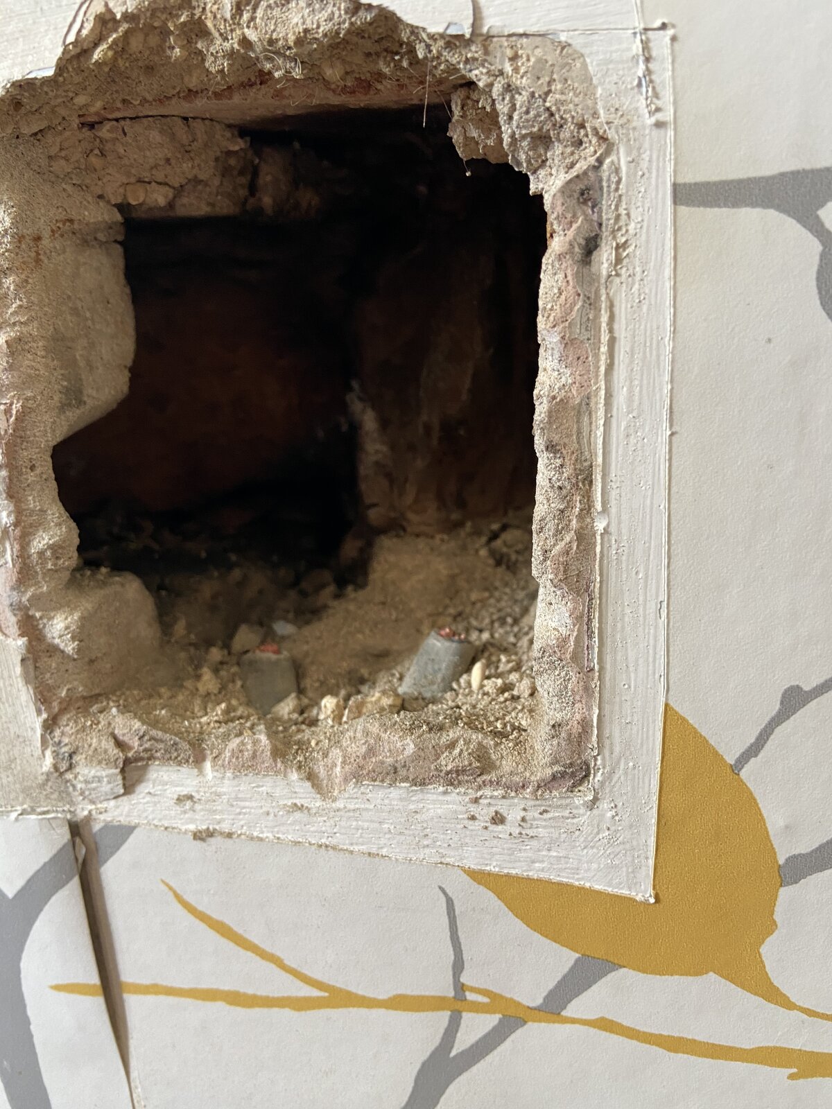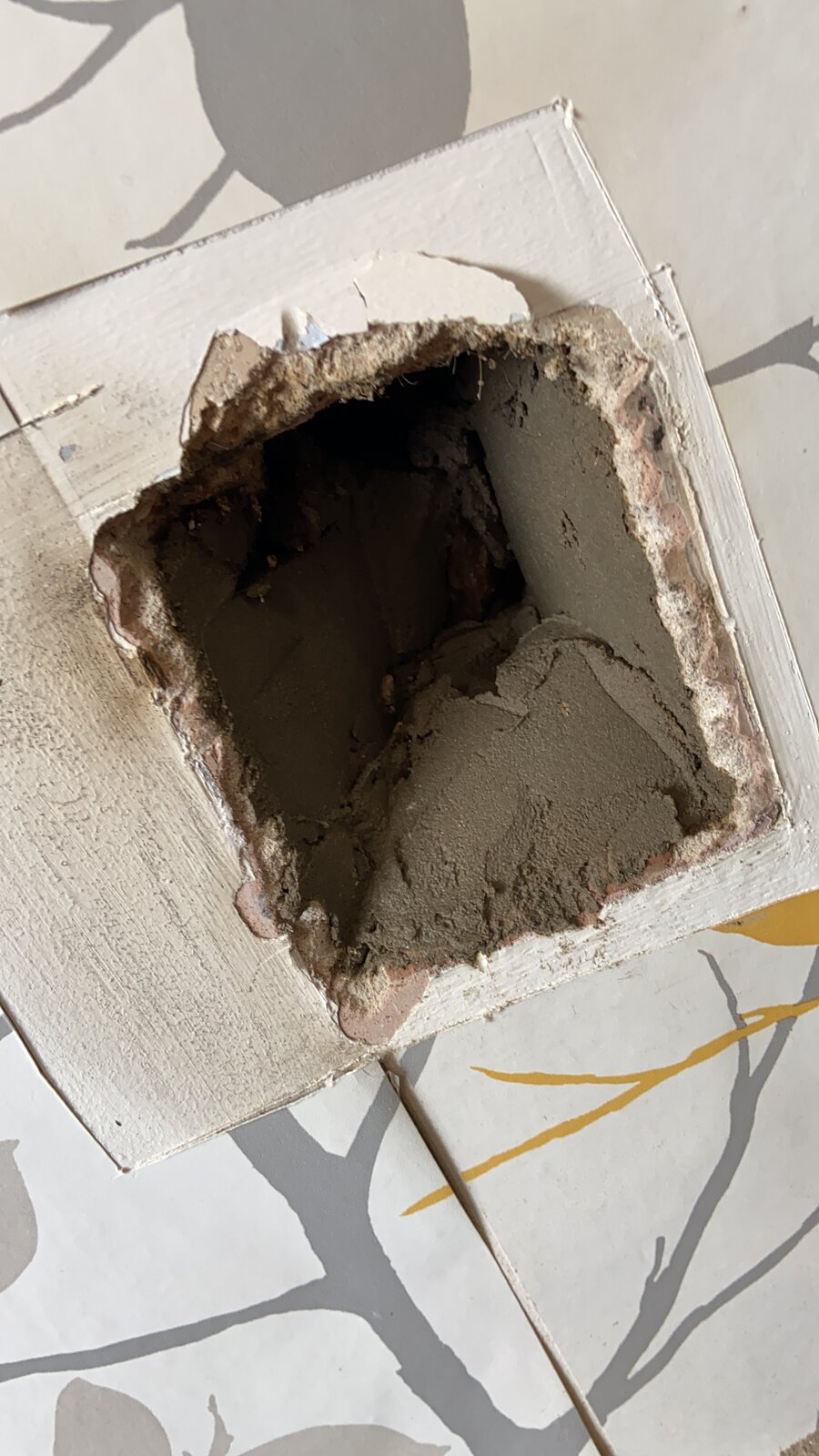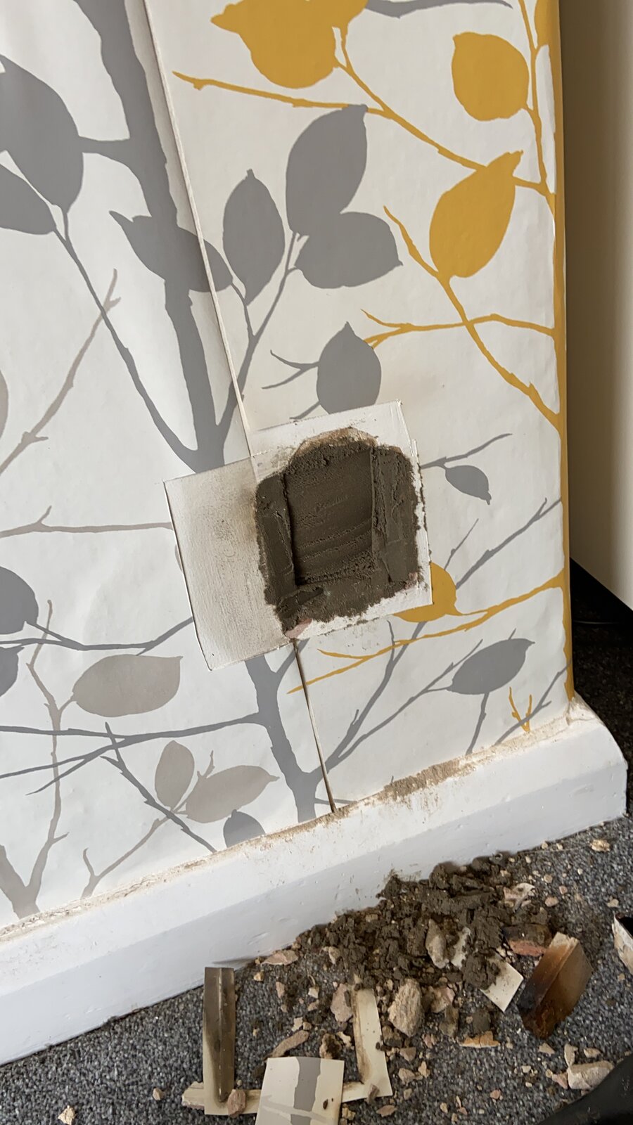 A) remove the cable where some smoke comes and squeeze cement into the hole and fill the back box, then wallpaper, concern here would be it could make it worse as when looking into the floor space when the electrician was here there was no evidence of soot.