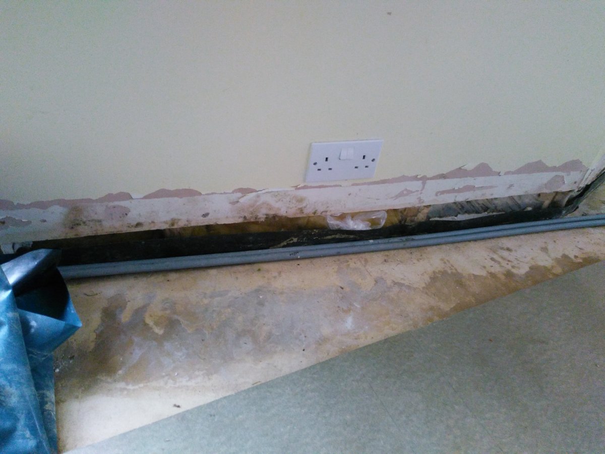 Two slow leaks have led to a saturated chipboard subfloor in our kitchen extension, as well as destroying the engineered wood floor. We noticed water leaking out through the walls at the DPC.