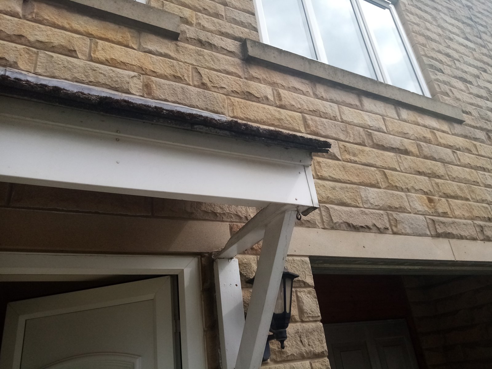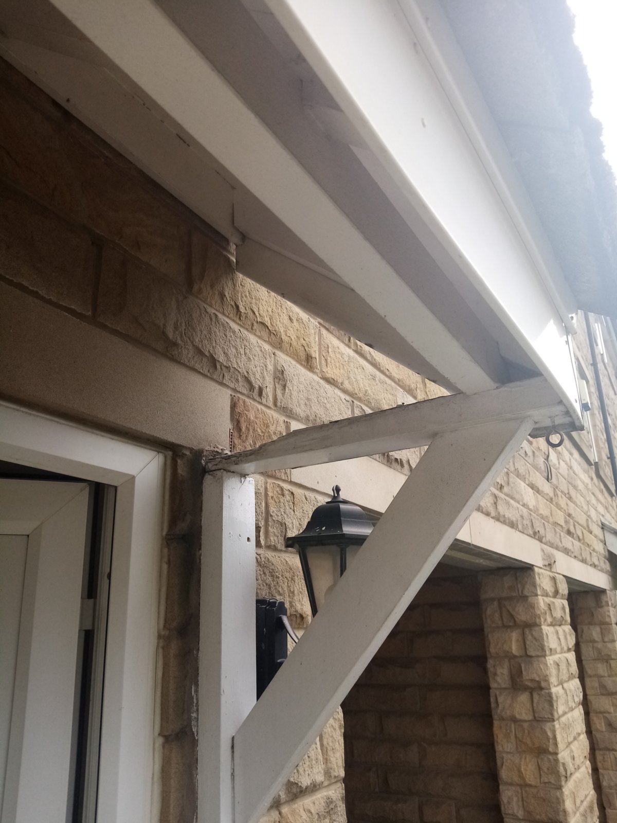 Rent 2 acrow props, hold the roof, dismantle old bracket, fit new ones, remove props.