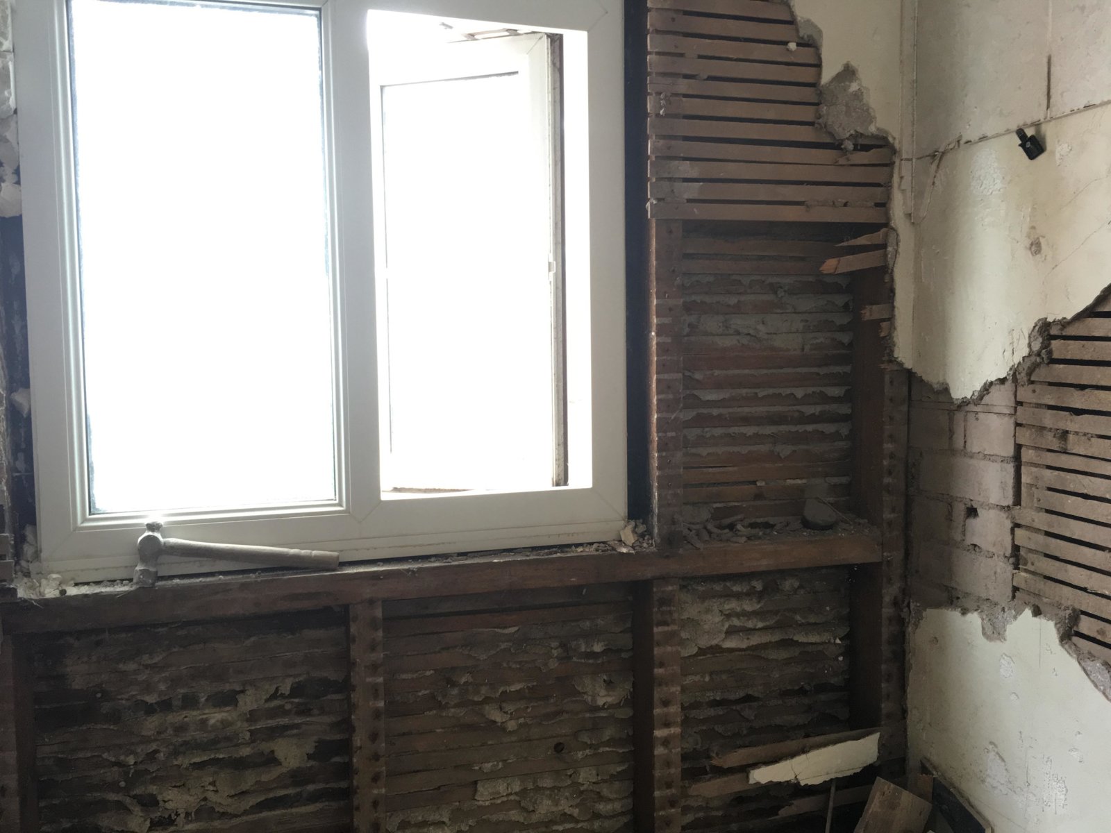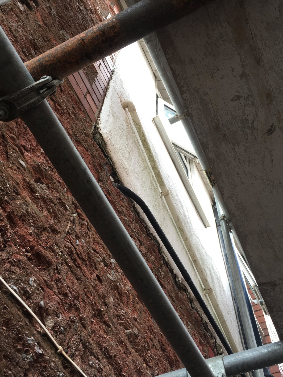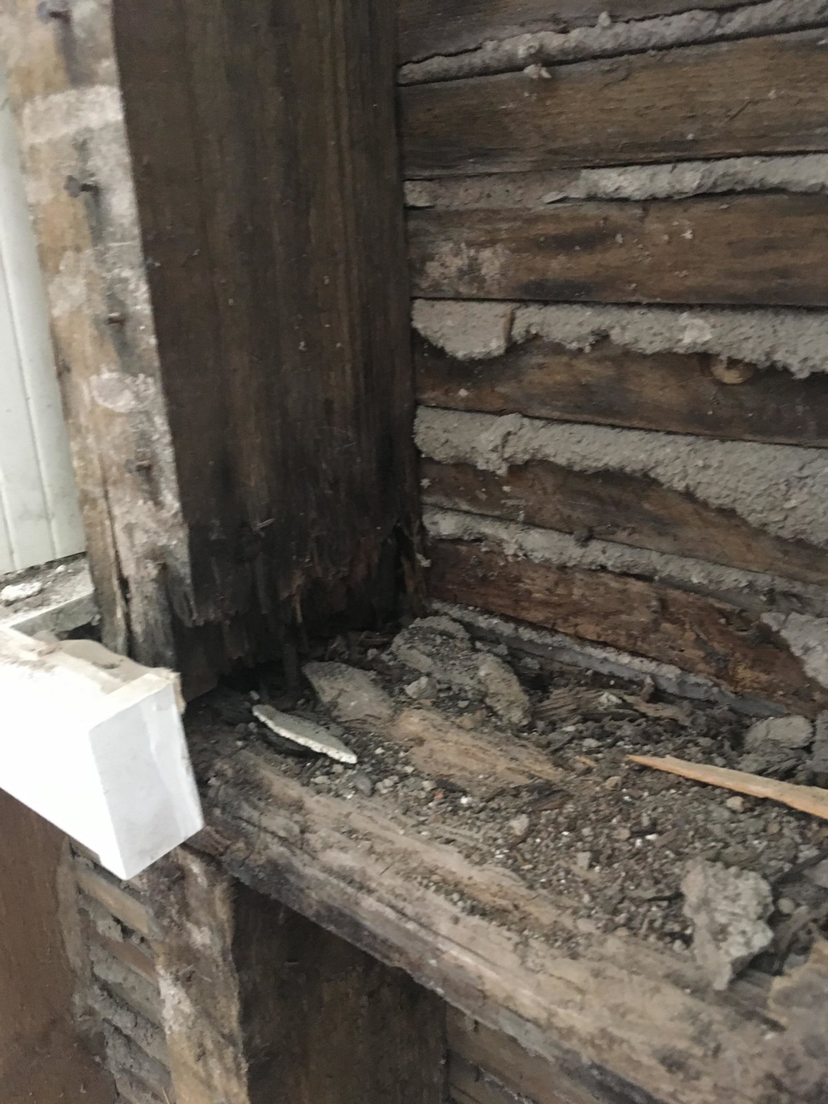 The issue we have come across is that the wall in question has been done previously to a very poor standard; windows don't fit correctly, external rendering has not been maintained and is severely protruding the building, and has cracks etc, and has come away from the surrounding walls (please see in the pics), some areas have been repaired with heavy non breathable cement render of which (shock) the room has acquired damp and can generally not breathe with lack of ventilation... and the timber is now mostly rotten through.