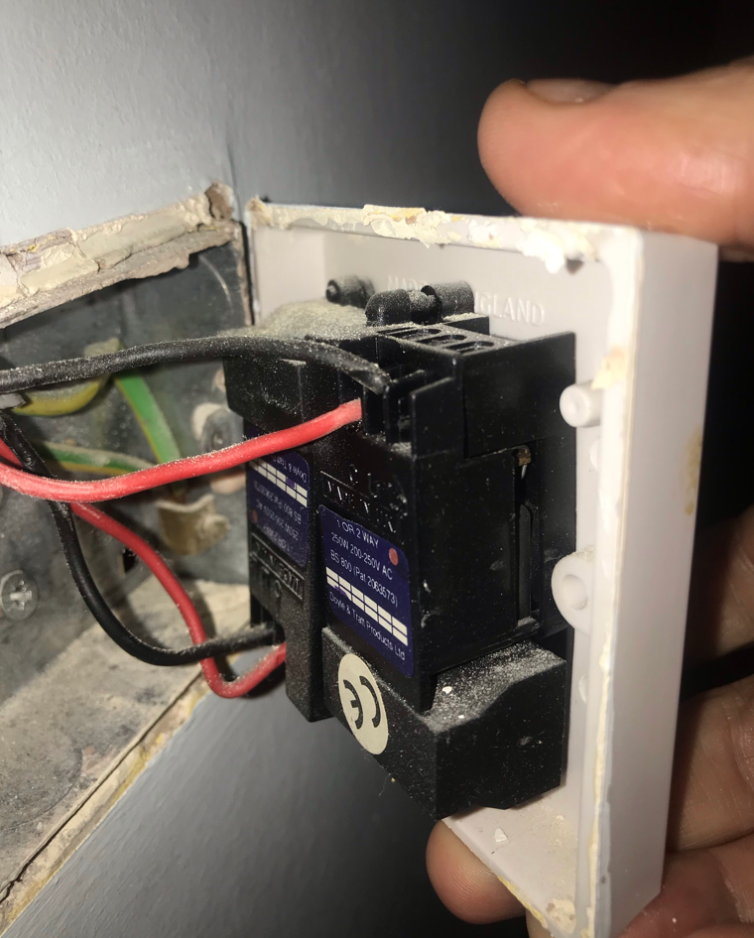 When I remove the switch from the wall there are two red and two black wires, one of each goes to different parts of the switch, i.e. one pair goes to the dimmer on the left and one pair to the dimmer on the right.