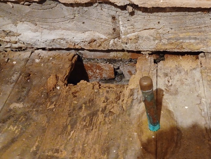 1930s suspend floor with brick 'walls' under the floor that the joist rest on.