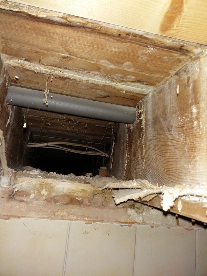 The rot looks like its come from the old tub leaking water over many years (survey didn't pick this up