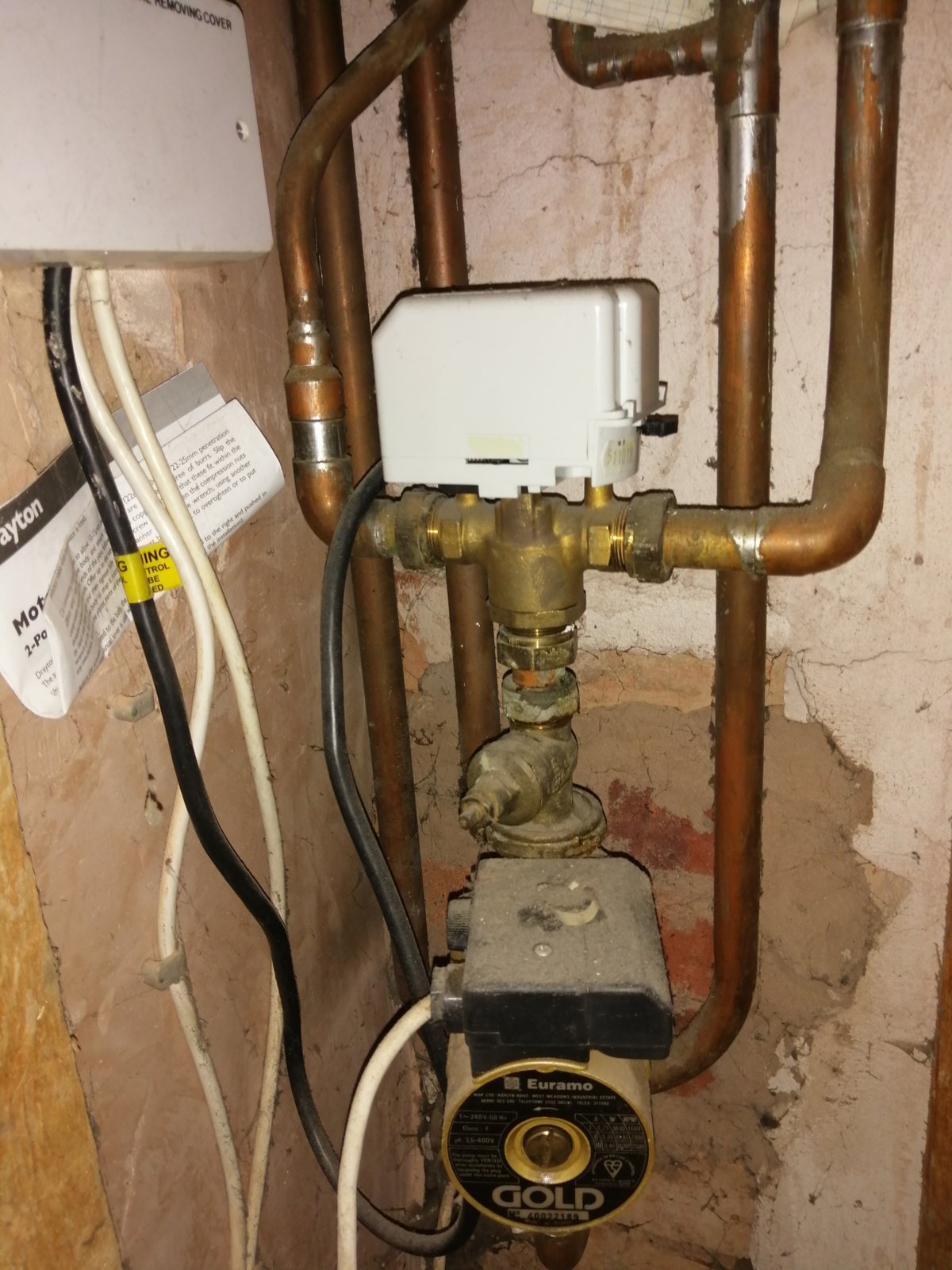 The last post was asking to see the wiring for the thermostat in the wiring center, I didn't reply as it was behind an enclosed part of the chimney and didn't want to disturb the decorating to get at it but we have recently had the pump replaced so it had to be opened up. So I took the opportunity to take a picture, does it help?