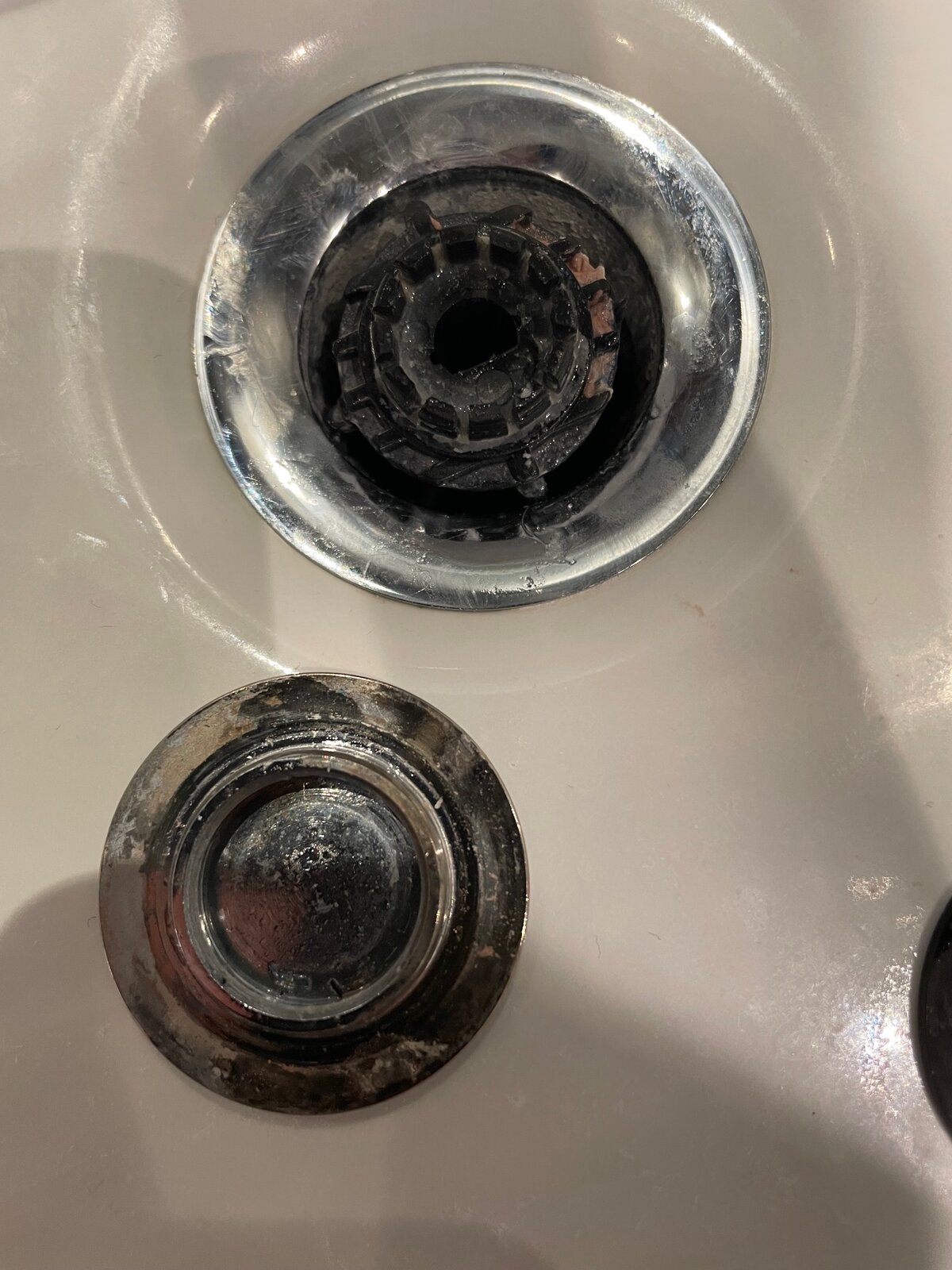 The wife used an abrasive cleaner which has tarnished the chrome plug cover in our sink. I tried to remove the whole plug unit as I thought it could be replaced, but it doesn't seem to come out.