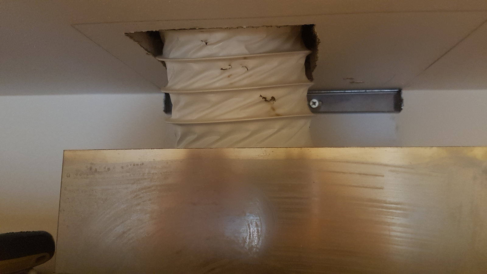 I'm looking to replace my cooker hood (it's a bit warped) - I think it's been there since the apartment was built in 2007. I've attached a couple of photos.