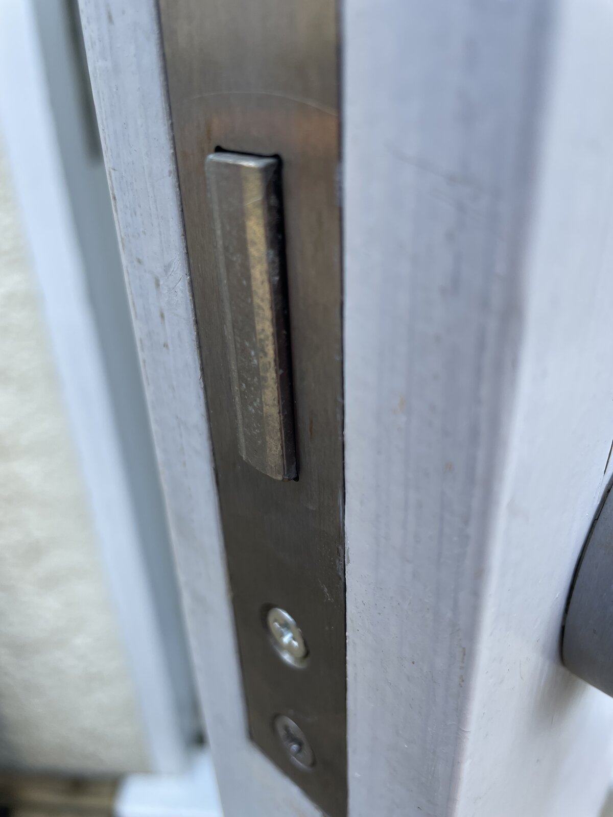 He means the dead bolt that is shown in the first picture slightly sticking out.