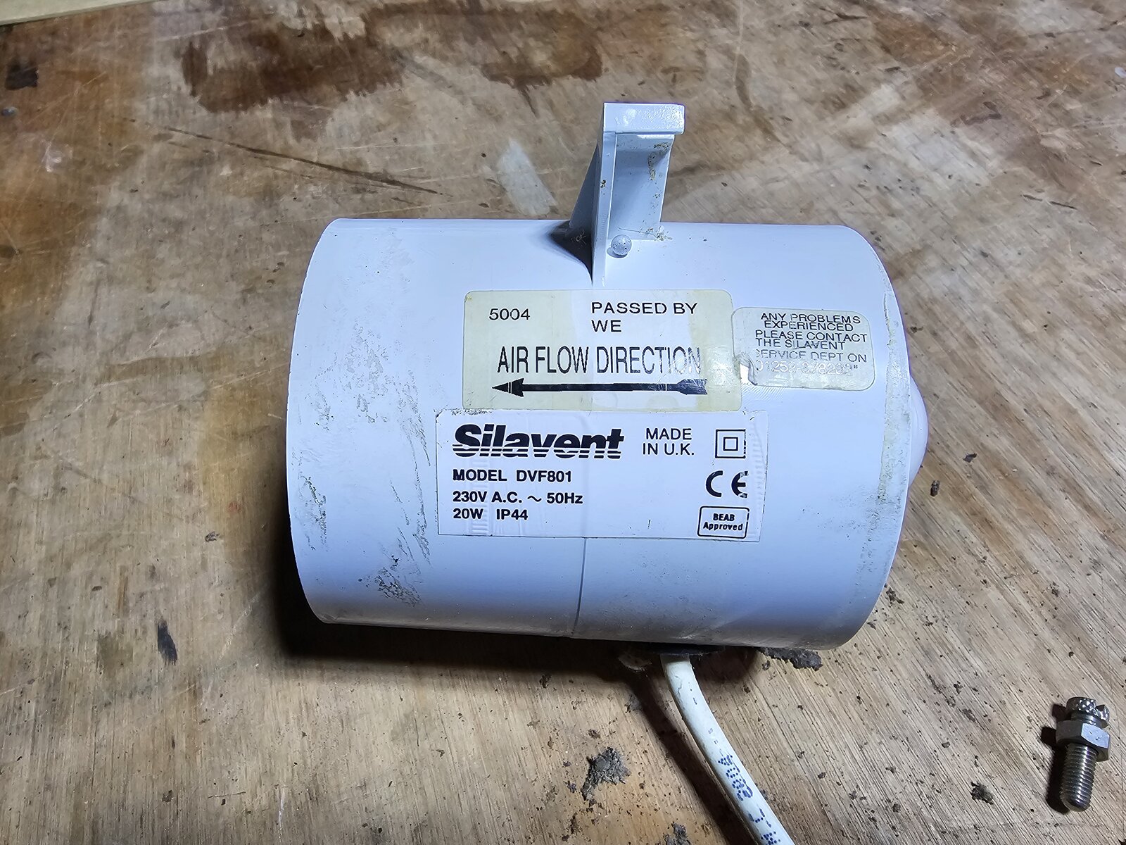 At £20 for one same as failed, so simple to fit, is it worth the effort to improve it? I found this bathroom no sign of mould even with no fan, but old house in Mold, that did have a mould problem, so I sat back an pondered why, and realised all down to a gap under the shower door, in Mold it was over the bath, so could not seal under the door even if I wanted, and when using the shower the thermals distributed the moisture through whole bathroom, here I have a shower room with no bath, and the cubical seals at the bottom, so moisture stays within cubical.