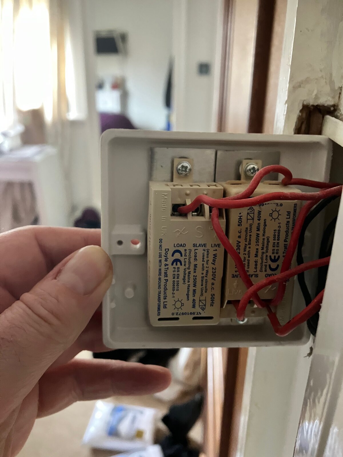 This is a house with pre-2006 wiring. I was exploring the wiring behind a 2 way varilight dimmer switch with a view to getting rid of it and just replacing with a normal switch.