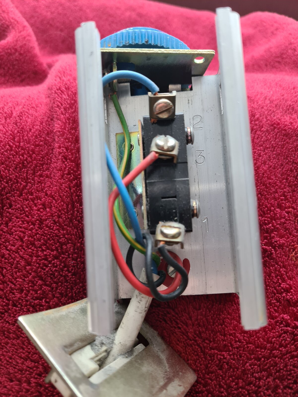 Yellow/Green attached to the metal casing underneath the blue control screw