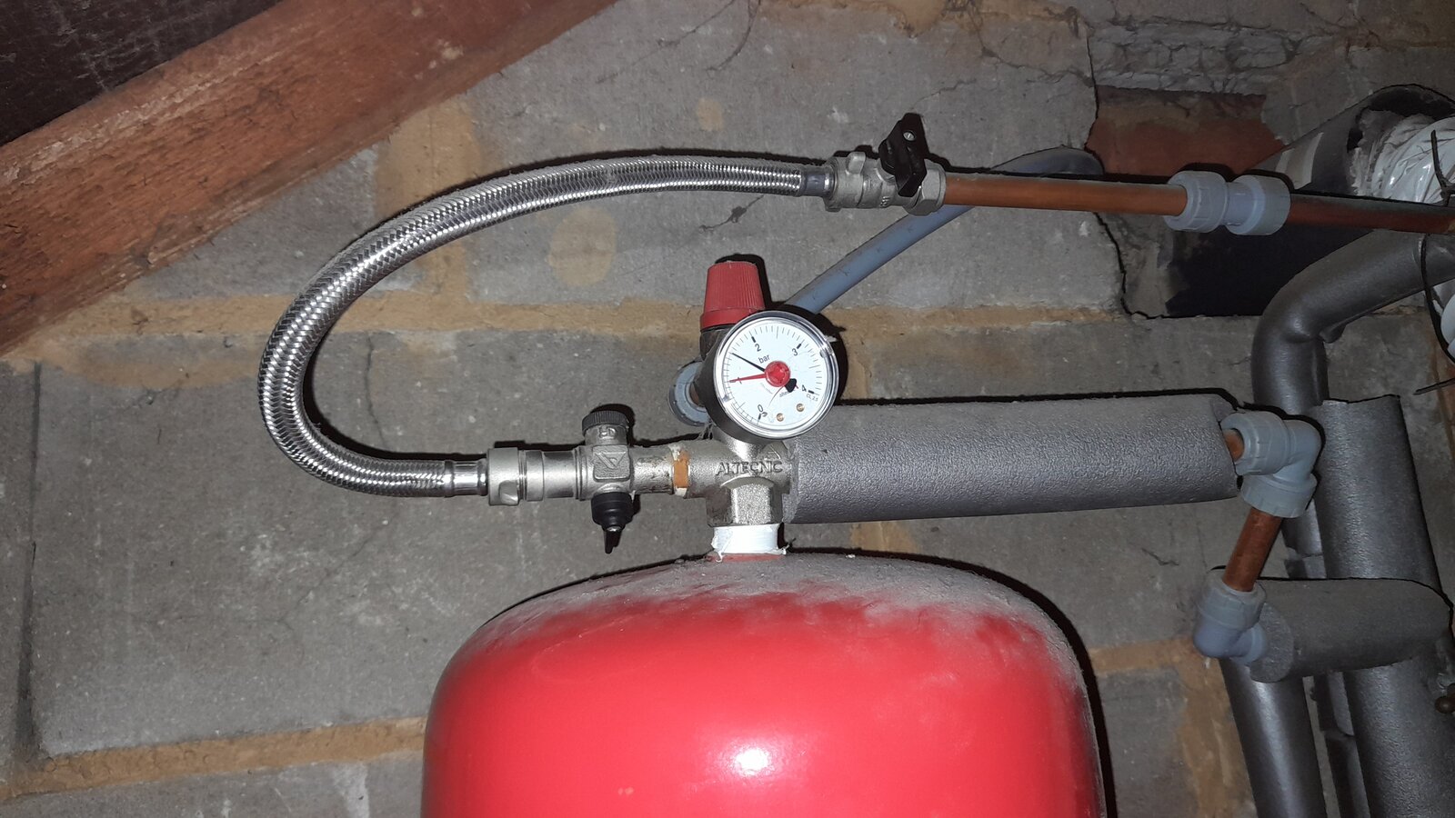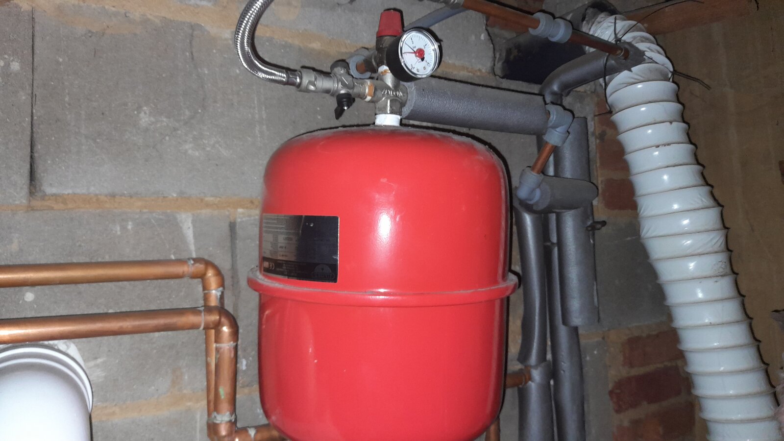 There is pressure gauge above the old tank connected to the pressure release valve which shows the maximum pressure of 4 BAR and has a red indicator arrow set at 1.BAR.(Pic attached)