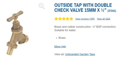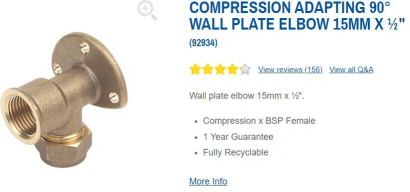 I’ve purchased a “15mm x 1/2inch outside tap” and a “compression adapting wall plate 90-degree 15mm x 1/2inch” both from S/Fix.