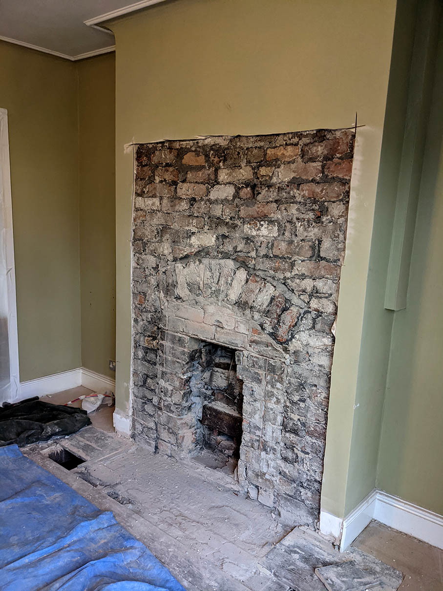 So, the reason for my post is that I have now chipped away the plaster on the chimney breast, opened up opening, found a solidfuel/backburner arrangement occupying a larger recess with jambs and a brick arch. There is a straight metal strap a couple of bricks down from the arch but doesn’t seem to be embedded in jambs in any way. Planning to remove strap and inner fireplace as a bit tight on the headroom and sides for stove. Based upon research in similar houses I had expected to find a second larger concrete lintel further up which I would probably end up replacing and plastering over, and easy fit of closure plate etc.. But instead there is the arch which is quite low down and the gather within the chimney probably lying immediately behind.