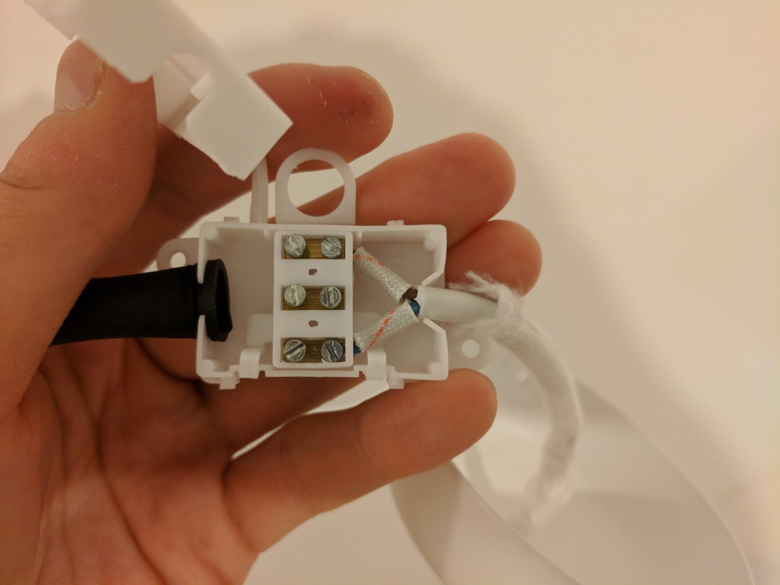 As you can see the next fixture doesn't have the same connectors as the old meaning I can't connect the two wires to the other light (not pictured). I think I need a chocbox but I'm not 100% sure. Does anyone have a link?