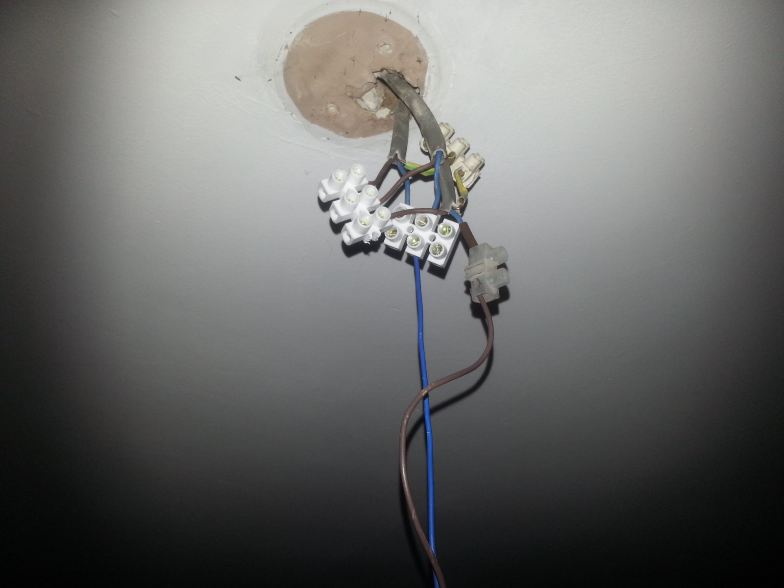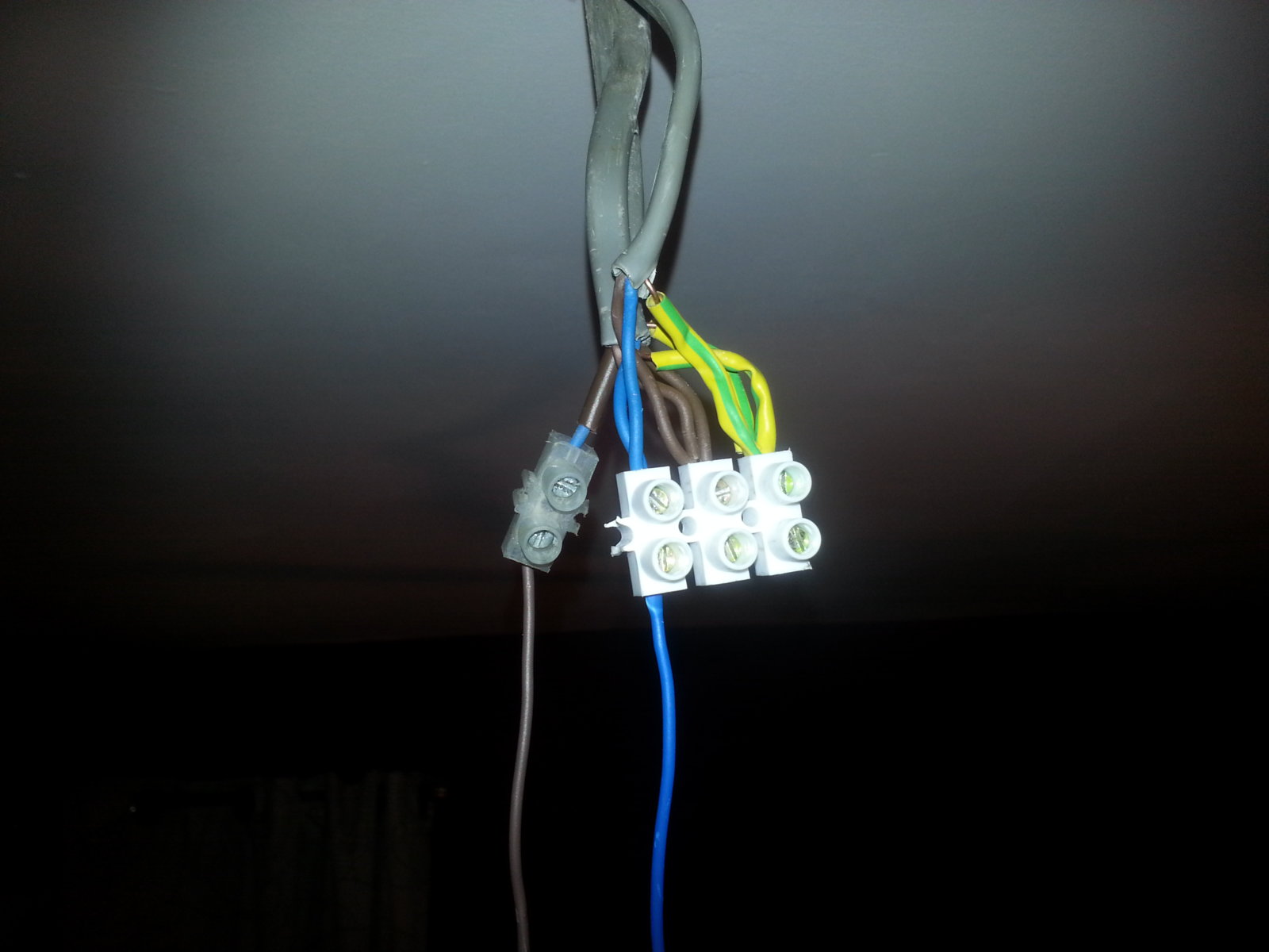 please see block fitted with my earth neutrals and my brown live wires which is the loop. then my live switched is the blue with the brown sleeve in