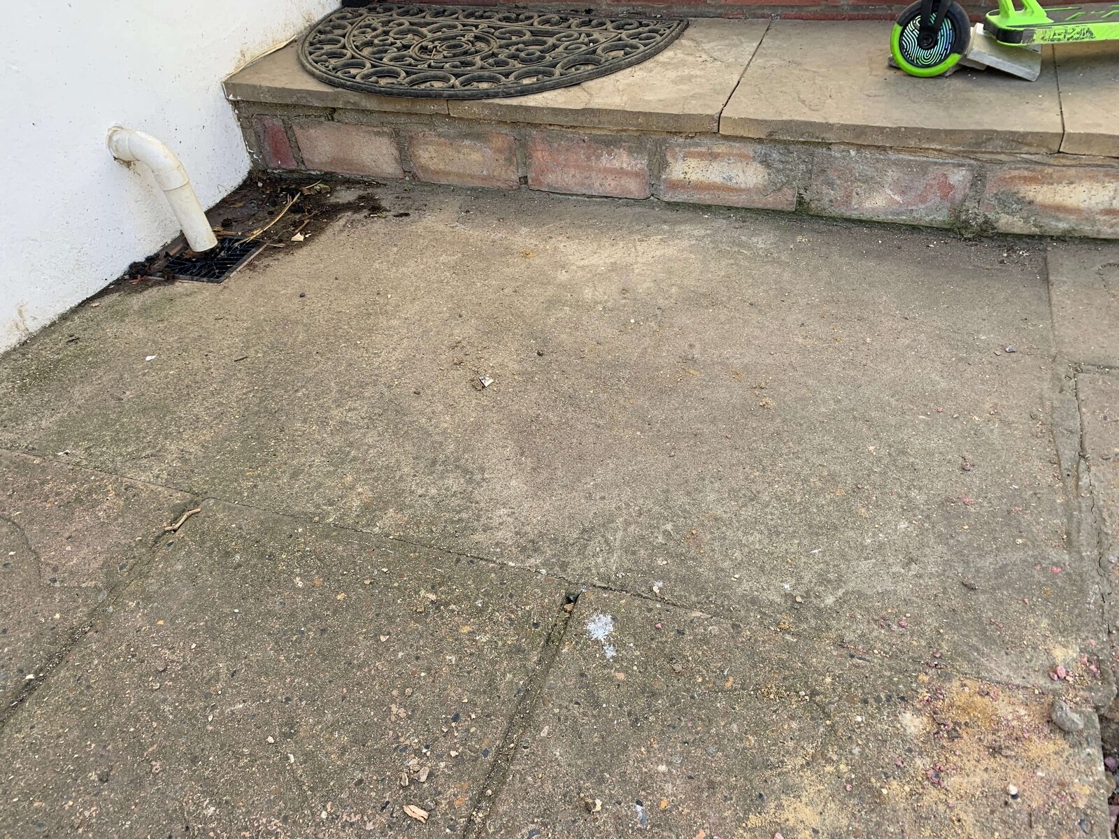 The slab has a slight fall that gets most rainfall into the drain. The patio itself will fall away from the house.