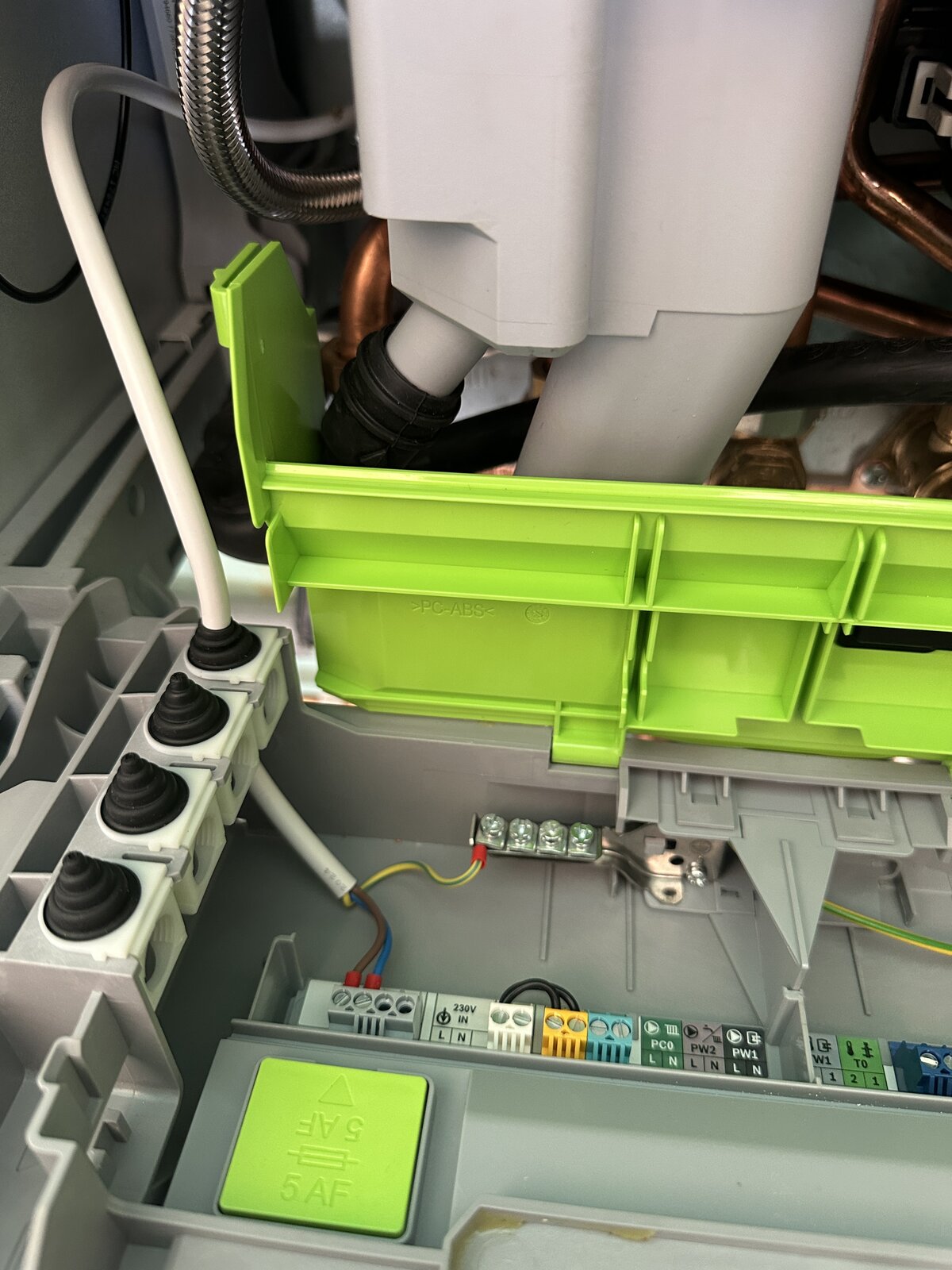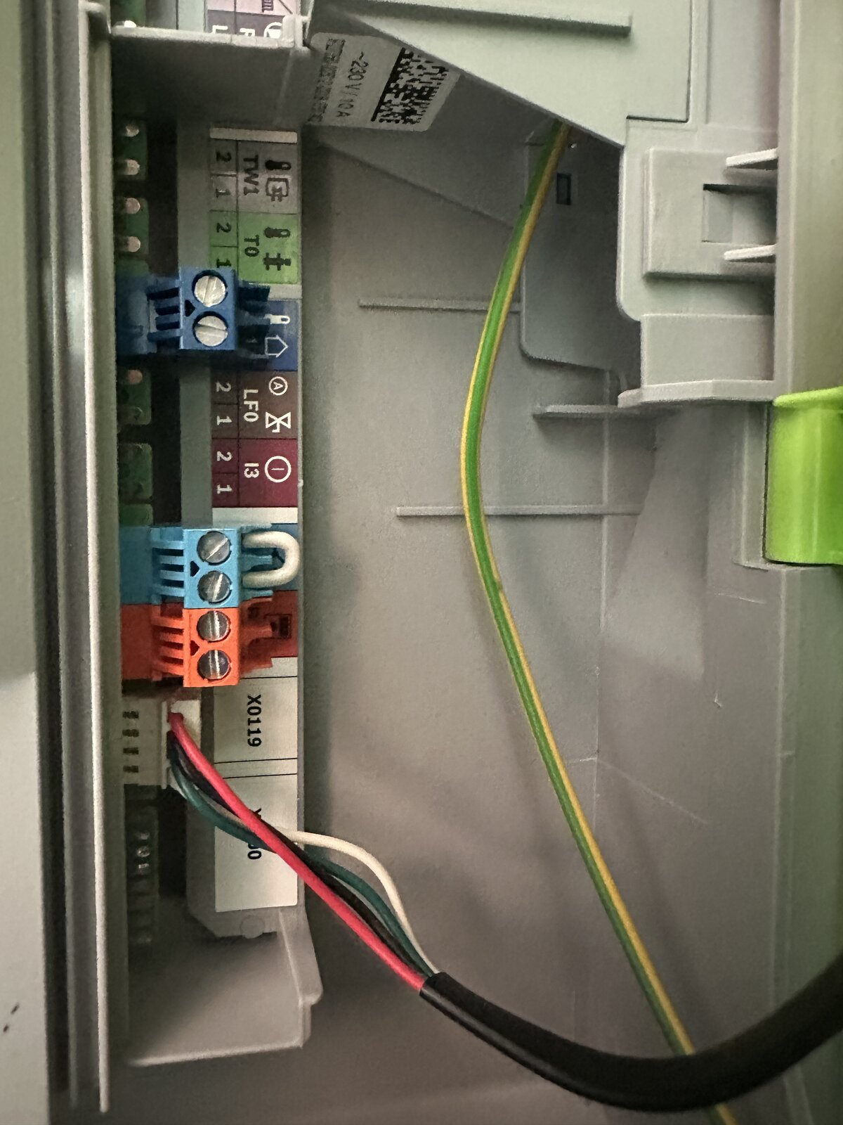 @Stuckinarut likely correct for OpenTherm if an OpenTherm enabled boiler, if not one of the links will be removed and thermostat contact wires will replace it, but I can't say which, as you have not said what the boiler is, so can't look it up, can't even check if now cover has been removed it needs a gas safe guy to test it.